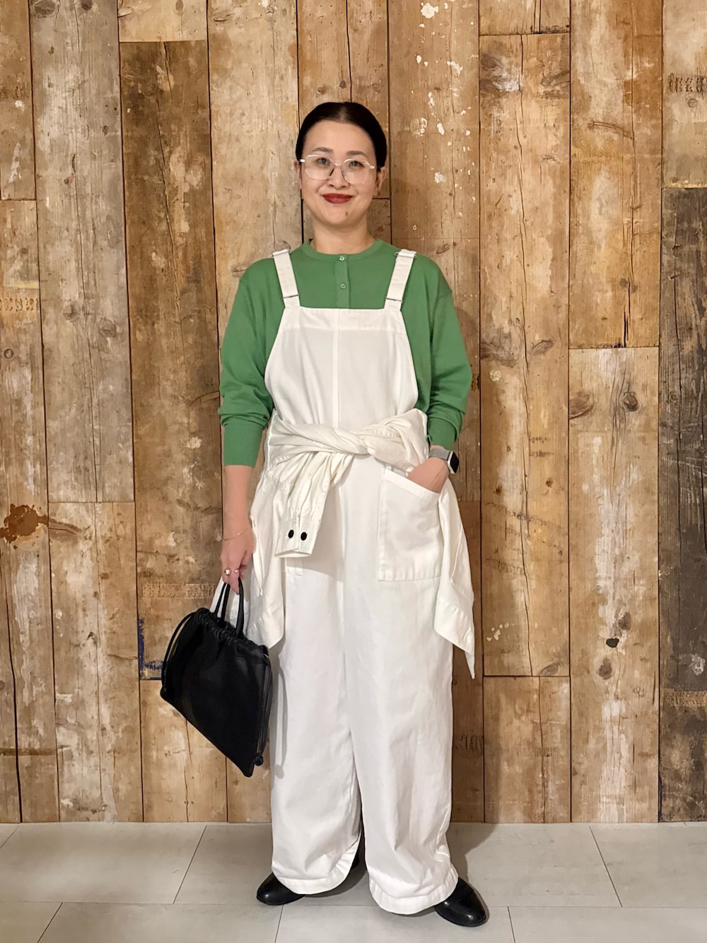 インナーとボトムスに明るい色を合わせたことで、初夏らしいコーディネートに仕上げました。