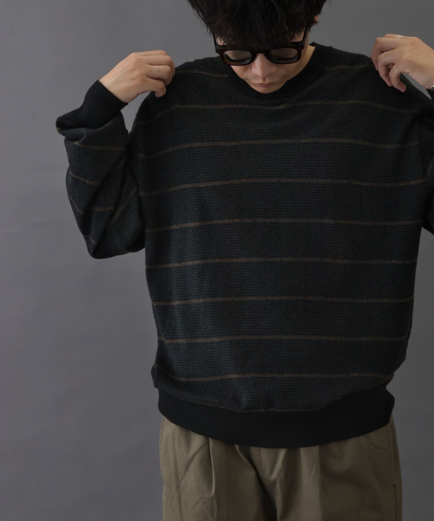 着心地の良いボーダーのニットにテーパードが効いているパンツを着ることでスラットしたスタイルにして見ました!又、帽子とカバンを持つことで更に秋感をだしています!