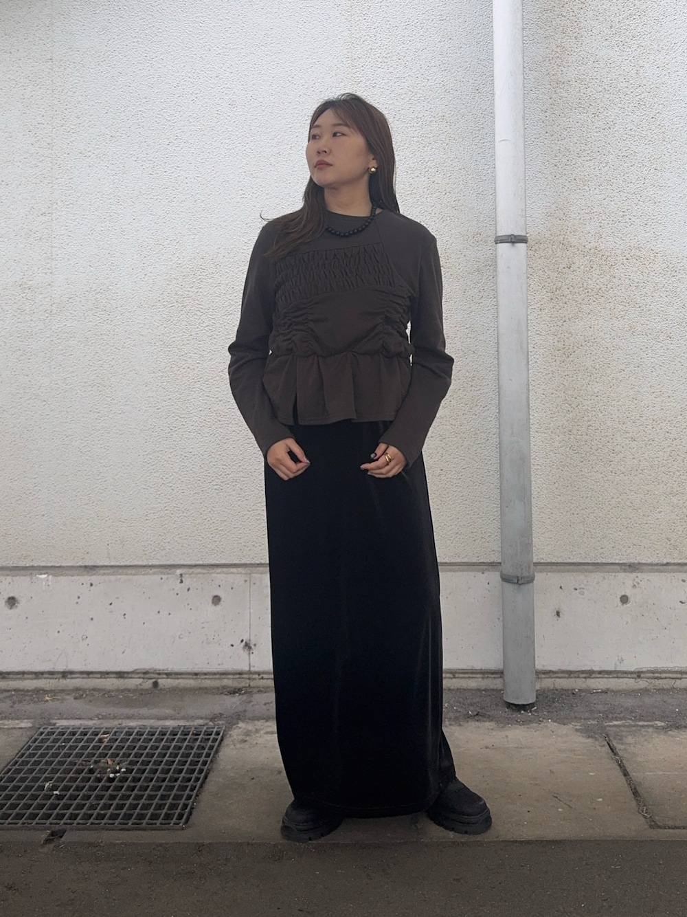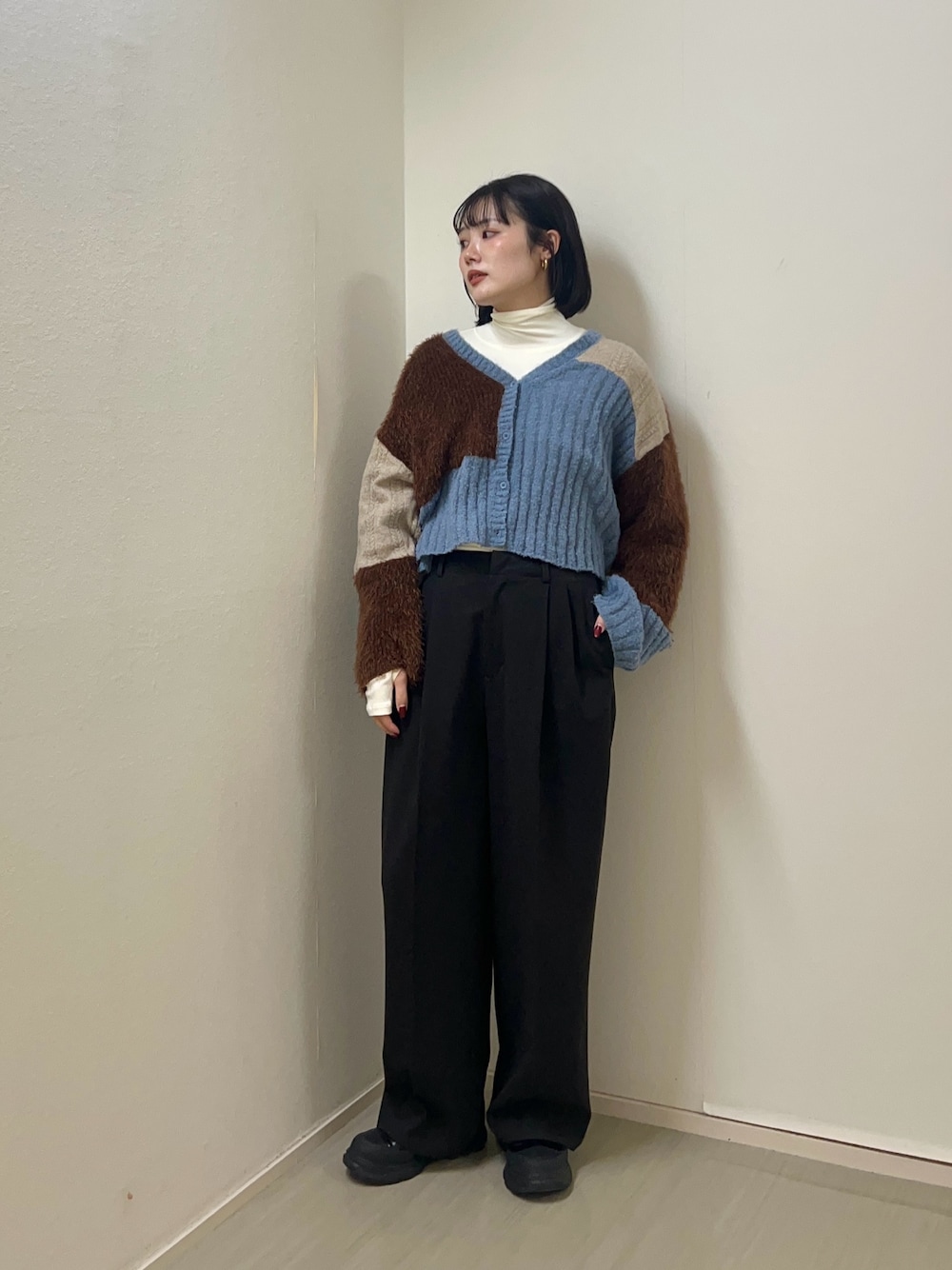 ミニ丈のボトムスで合わせるのもかわいいです^^