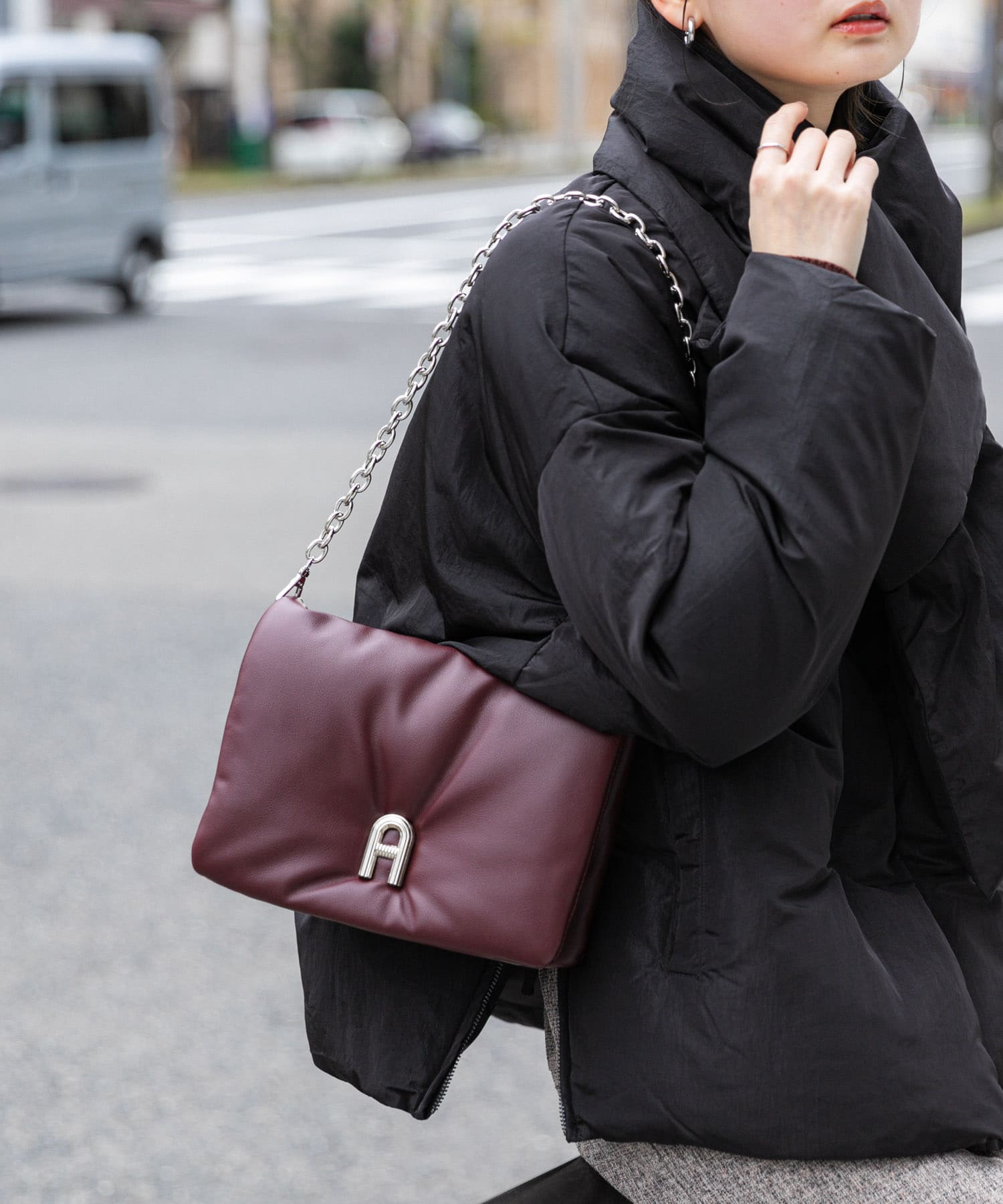 インナーにリブハイネックなどを着ても、 Tシャツやロゴニットでも◎