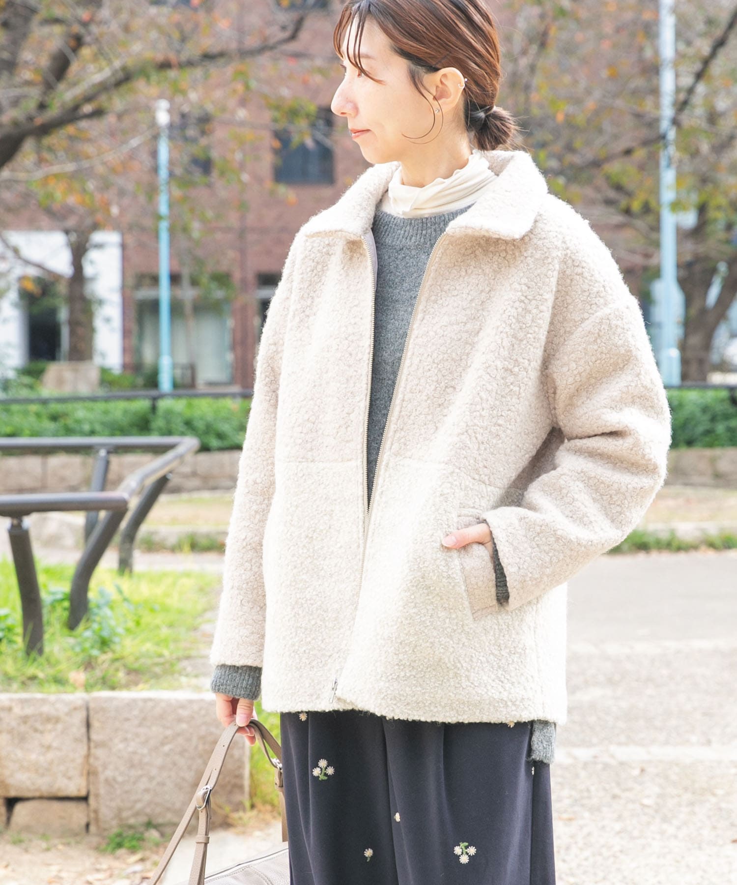 程よくゆったりめなので分厚めニットの上からでも羽織れます◎
