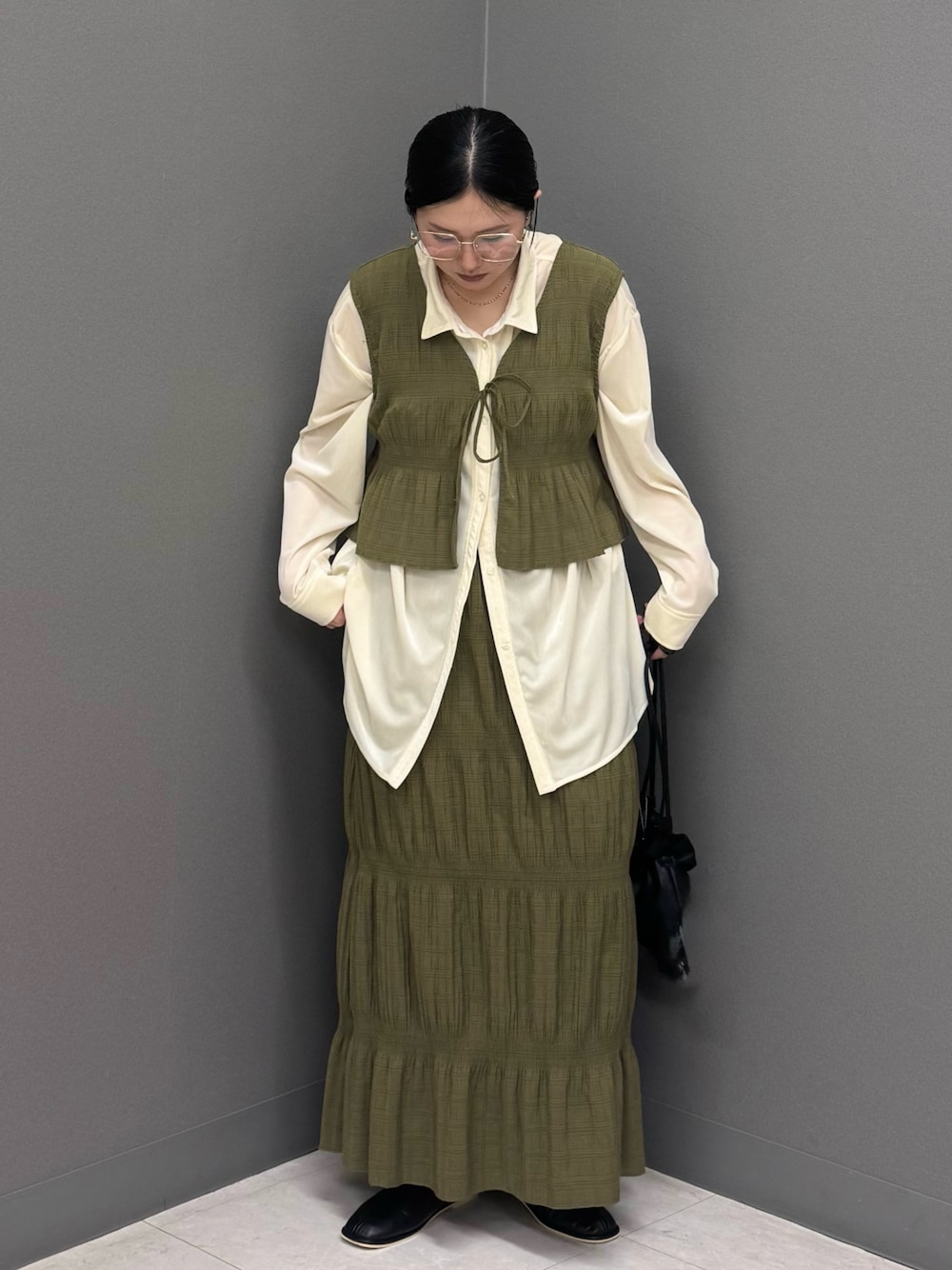 前を開けて羽織りとして着たり、ボタンを閉めて着てもかわいいです!