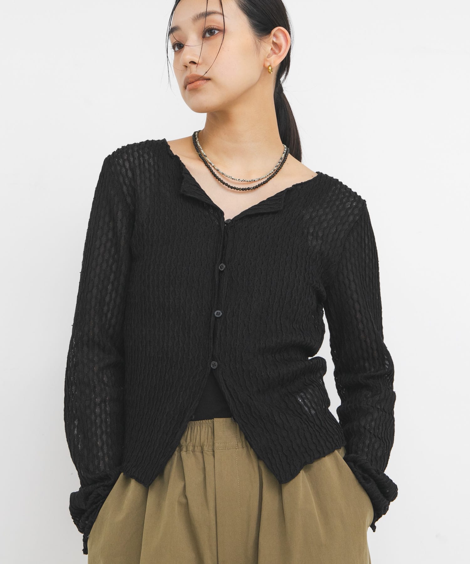 程よい透け感がかわいいトップスにスカーフを合わせてアウターなしでも可愛いコーディネートにしてみました〜