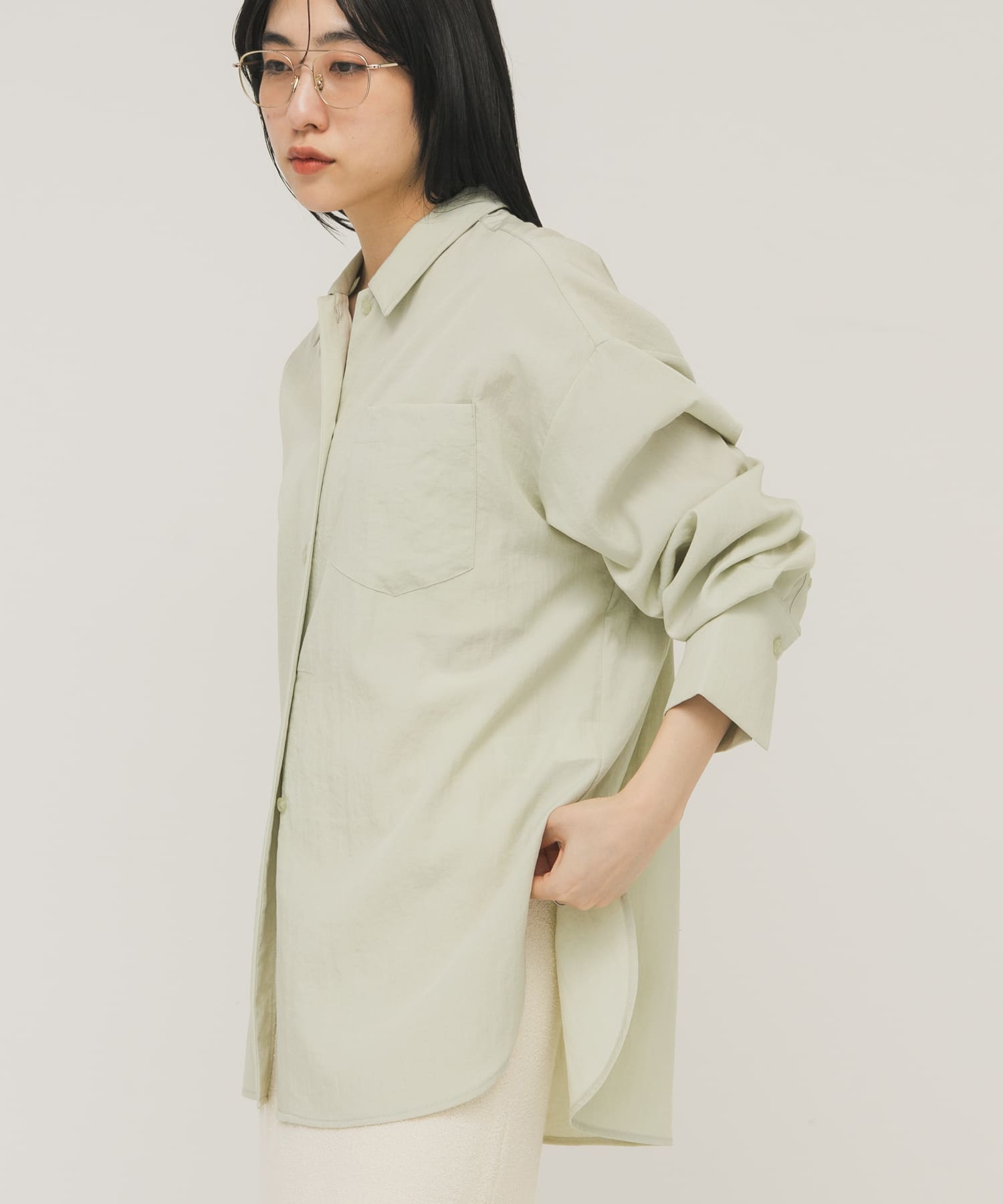 着てみた感じ、オーバーサイズが苦手な骨格ストレートの私でもスッキリ着れました!生地に落ち感があるので上半身の厚みを拾わないところが推しポイント🫶🏻1番上のボタンを開けて着ると更にスッキリ見えますし、こなれ感も出るのでオススメの着方です!!