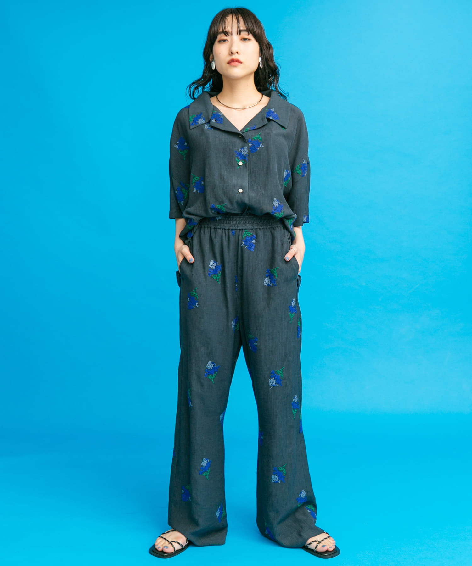 リバイバルのエンブロイダリーイージーパンツを使って大人めカラーコーデを組みました!