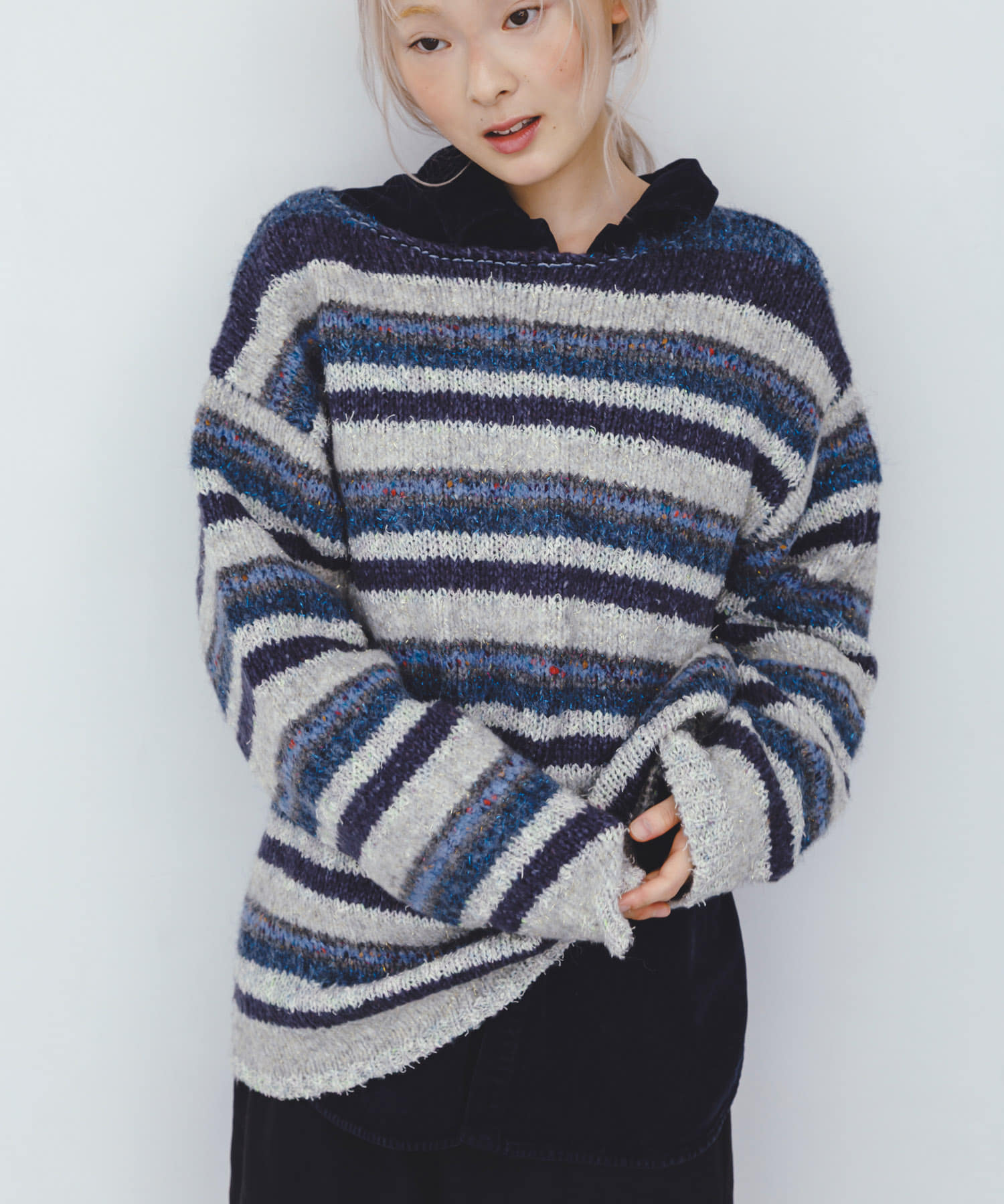 アウターの中に着ても、パっと配色が際立ちます✨ヒップまで隠れる長めの着丈なので、しっかり体型をカバーしてくれます🤲このゆったりとしたシルエットが、今っぽい「抜け感」を演出してくれますよ〜!