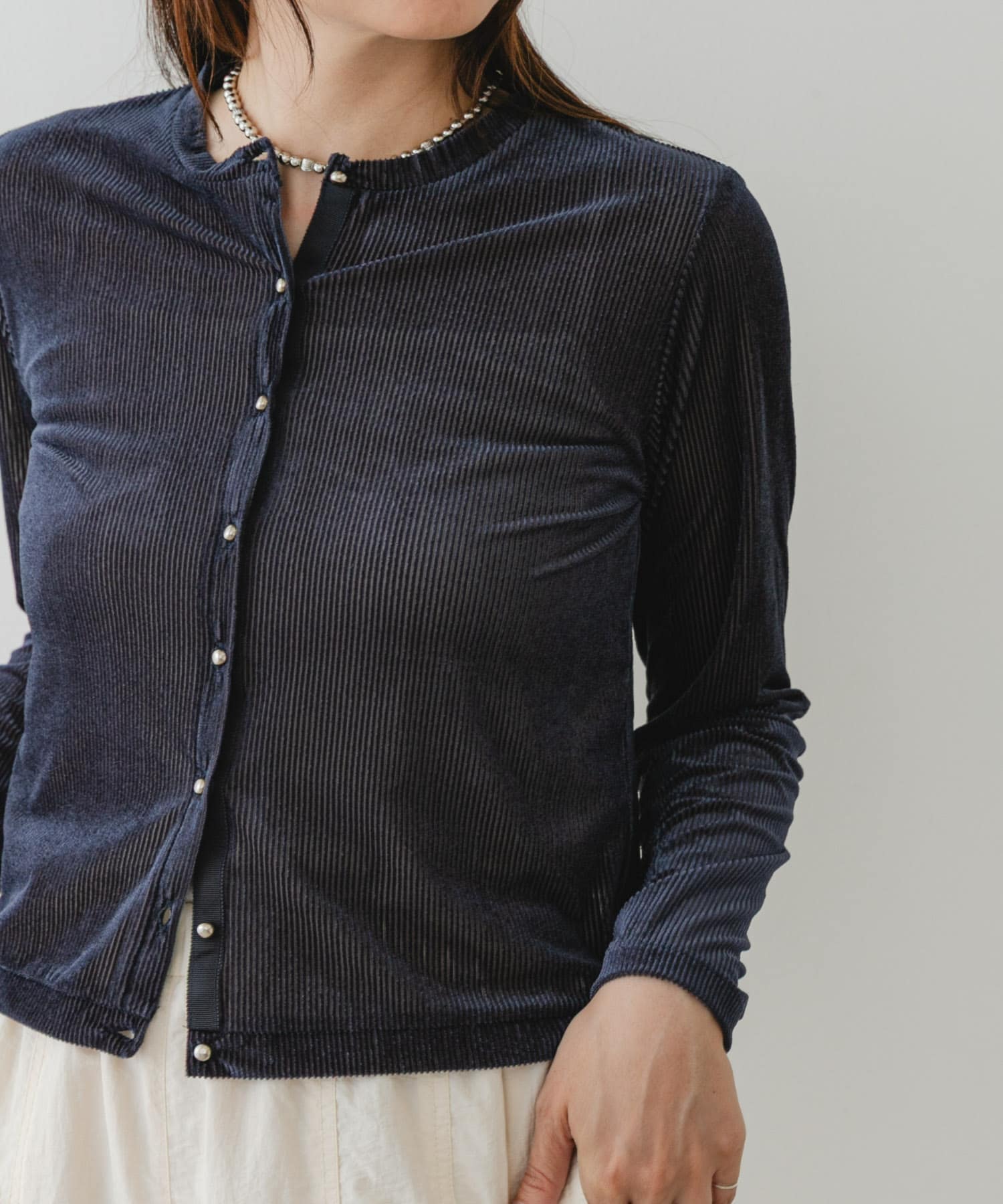 ROSSOF by ROSSO シアーリブベロアコンパクトカーディガン- 着用カラー: