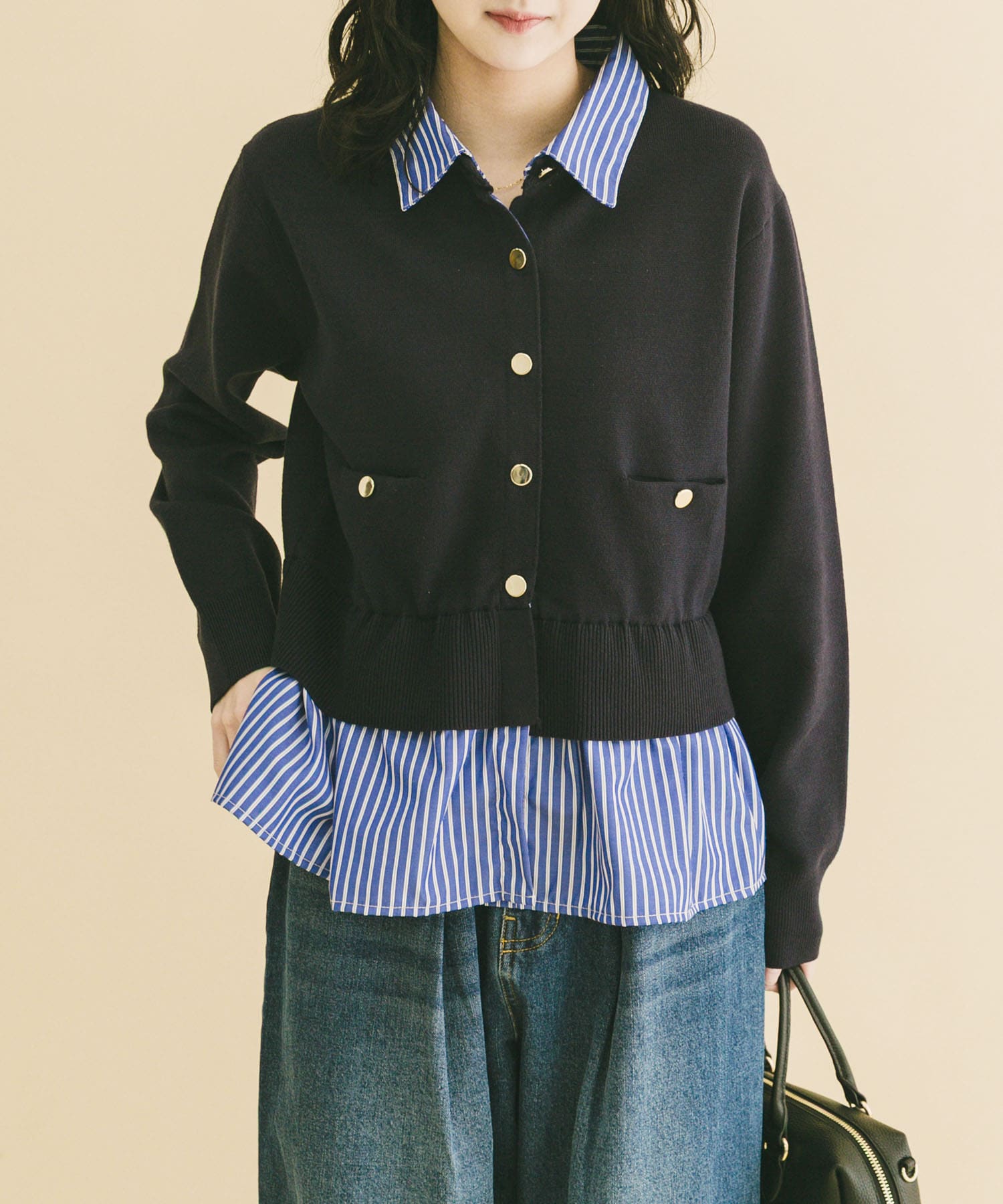 ITEMSシャツレイヤーニットカーディガン- カラー: