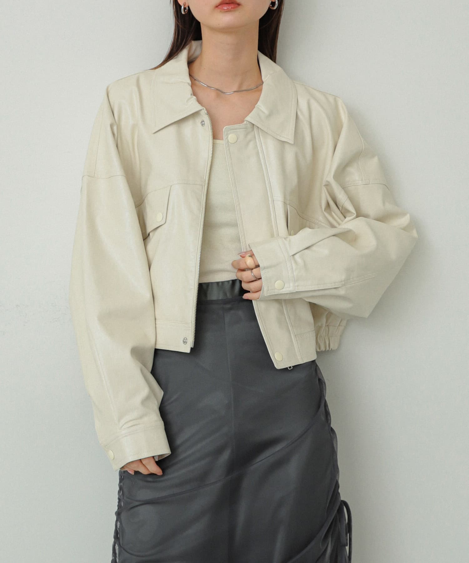 SENSE OF PLACEクロップドレザーライクブルゾン- 着用カラー:
