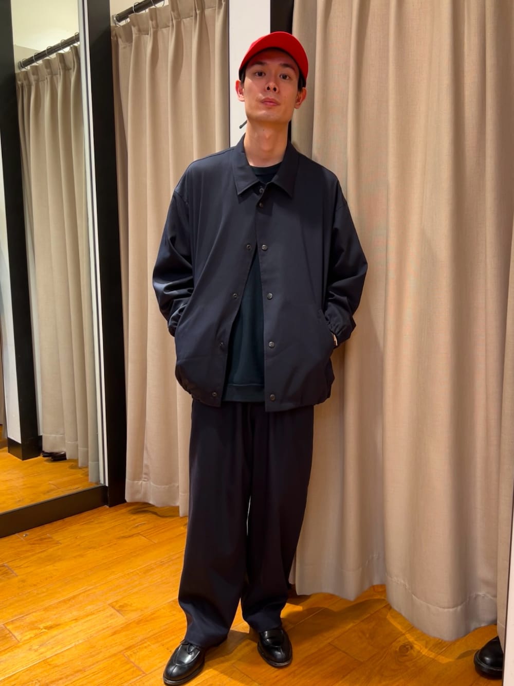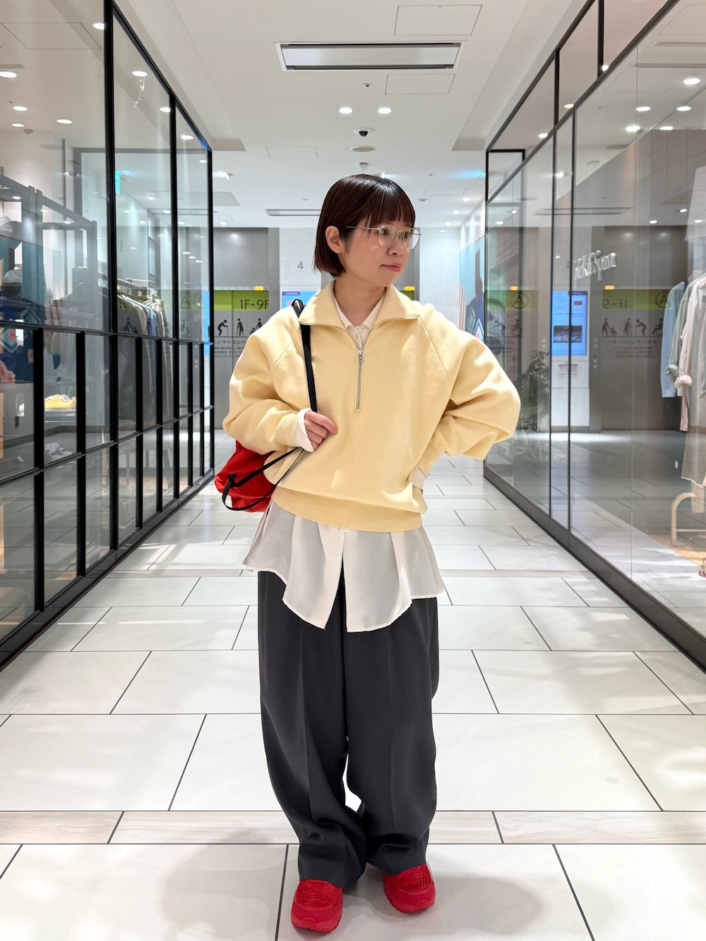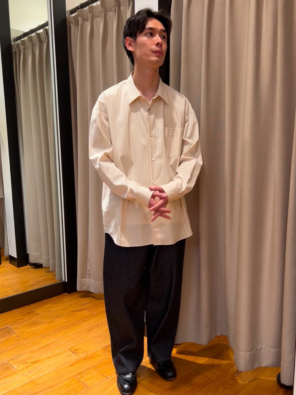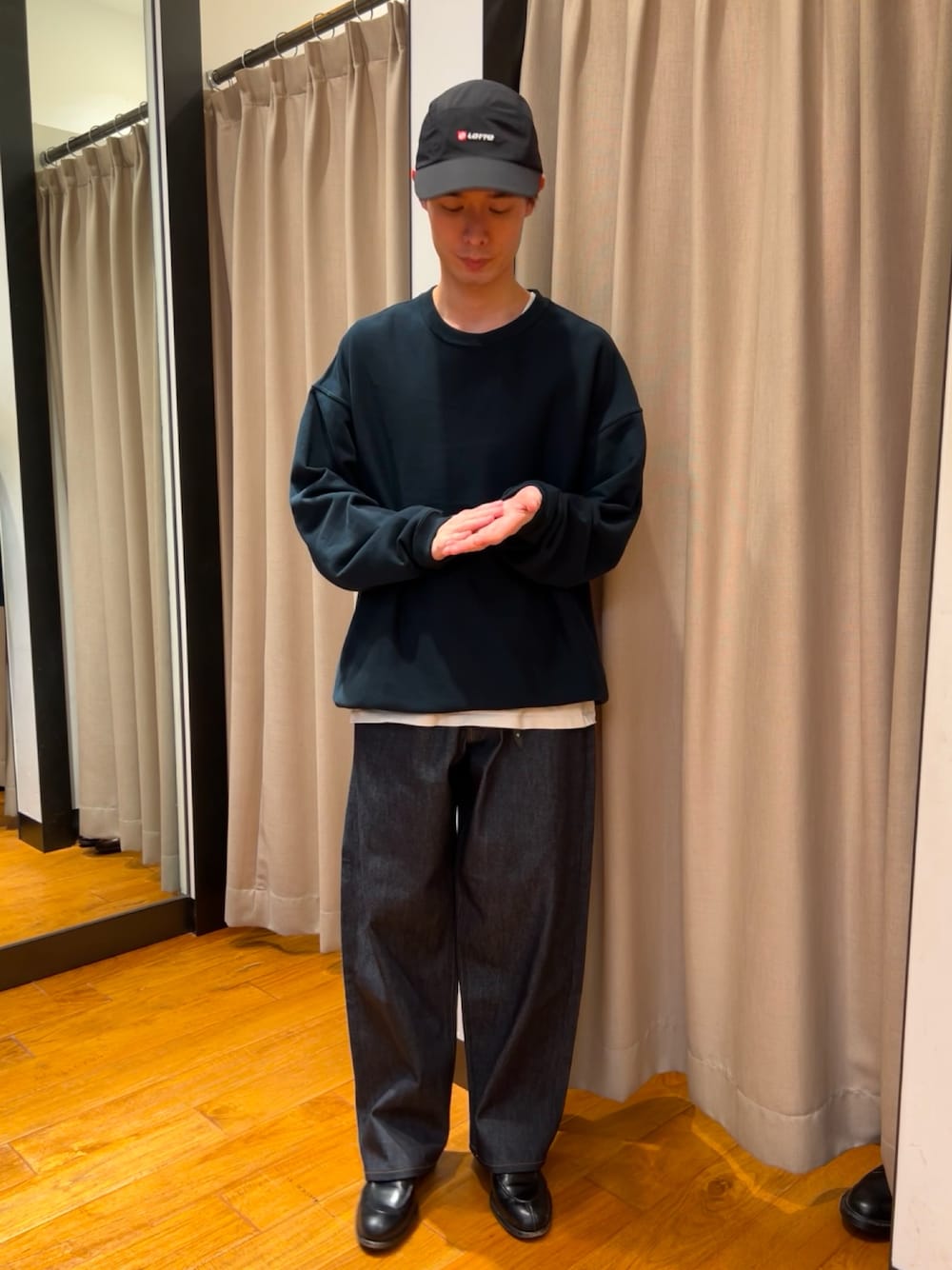 トップスがオーバーサイズなのでボトムスは程よくルーズくらいに抑えてます。