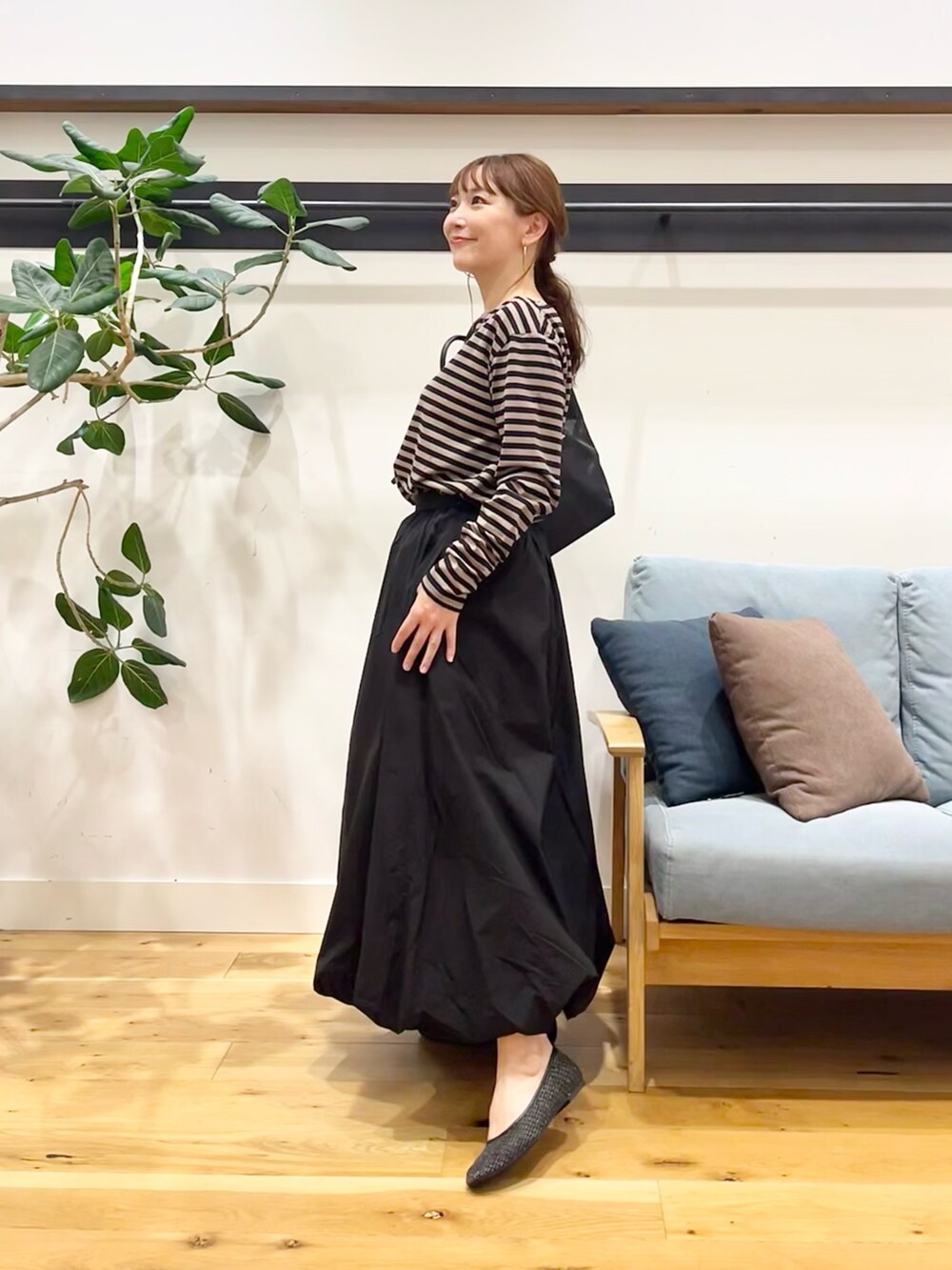 柔らかくて着心地の良いボーダーロングスリーブTシャツを合わせてます。