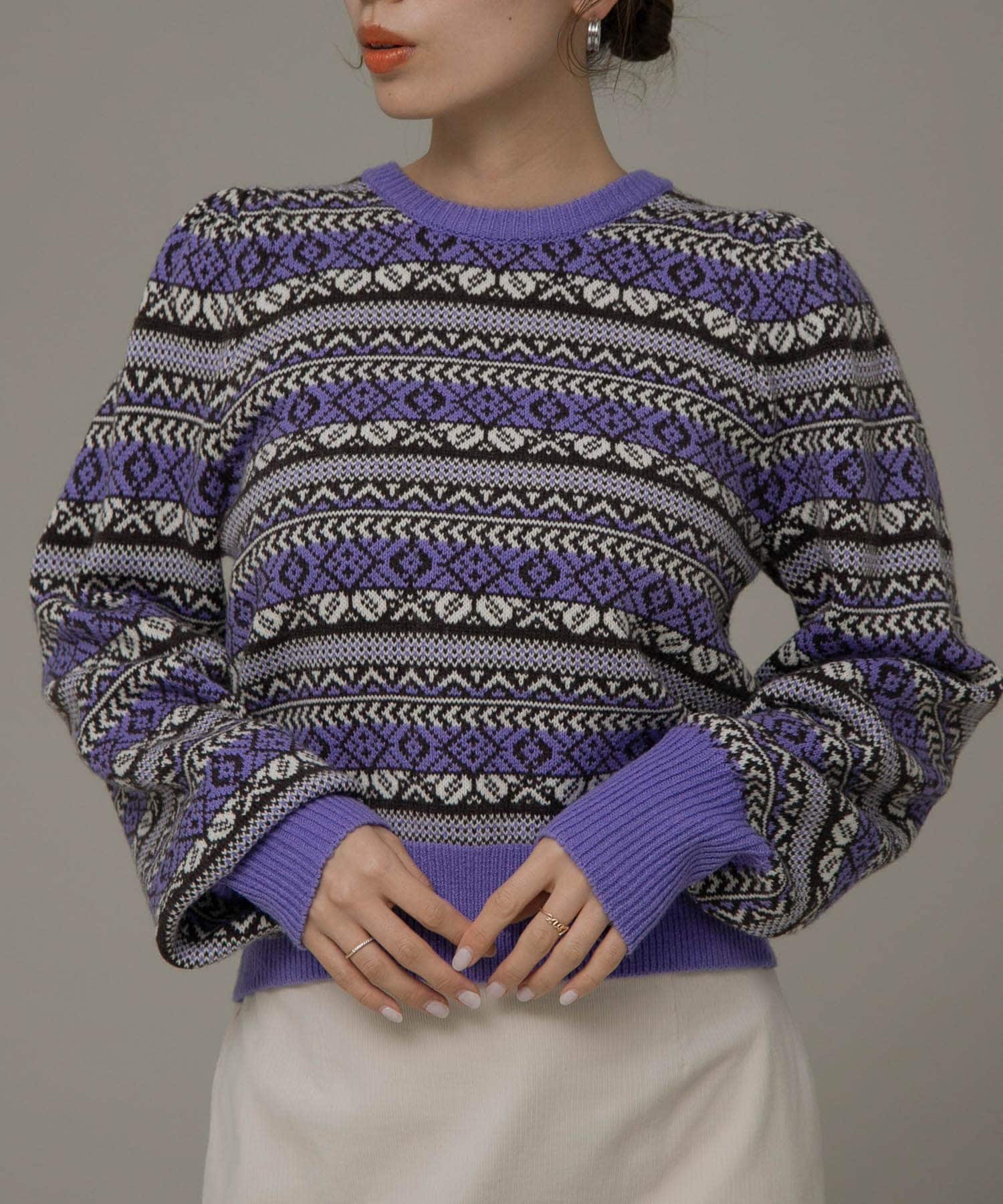 トップスは柄ニットで色味がとても可愛いアイテムです!