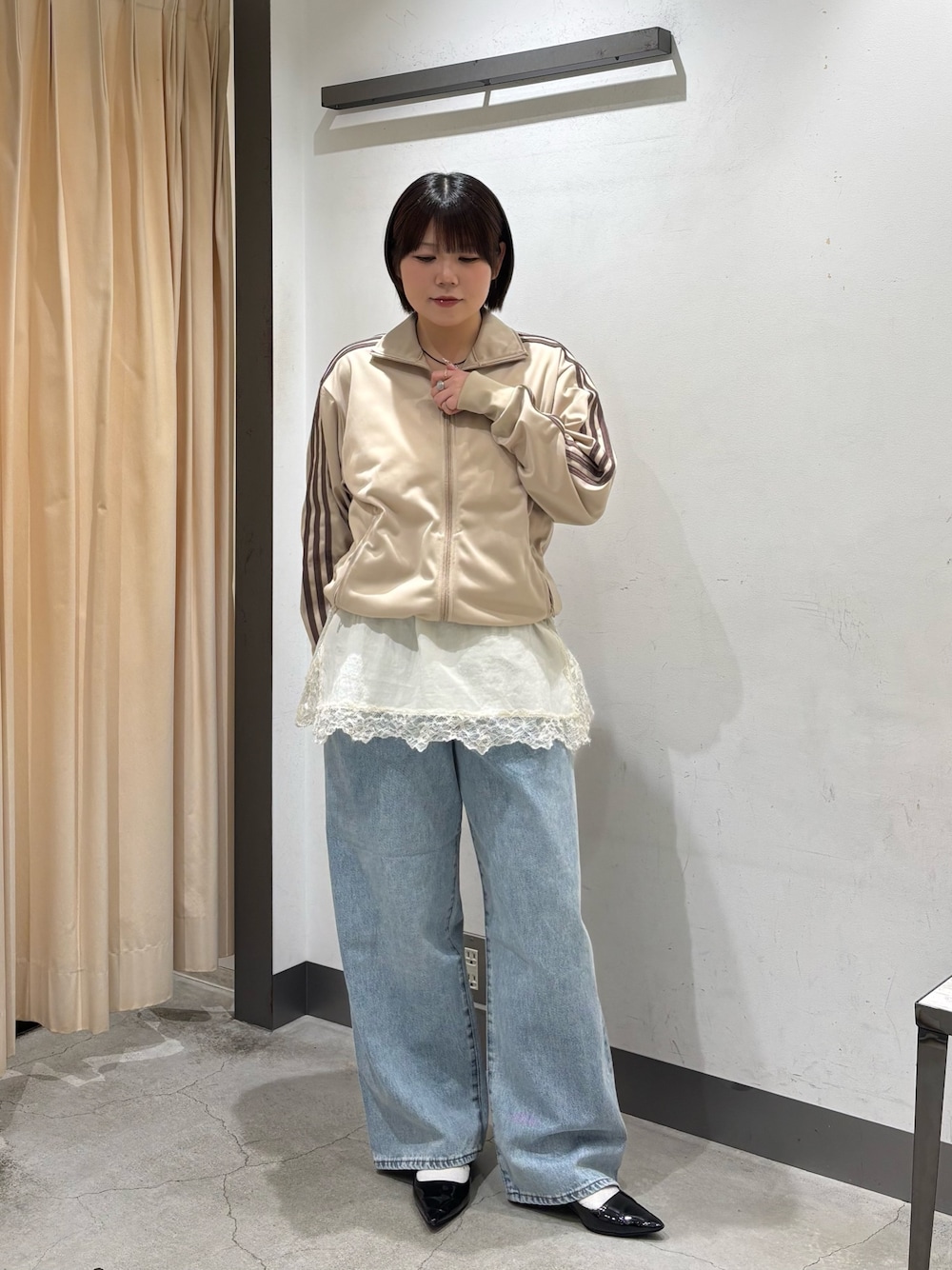 メンズライクなサイズ感なのでデニムやチノパンと合わせてカジュアルに着るのもよし、ベロアのロングスカートなどで甘辛MIXで着るのも可愛いです♥️