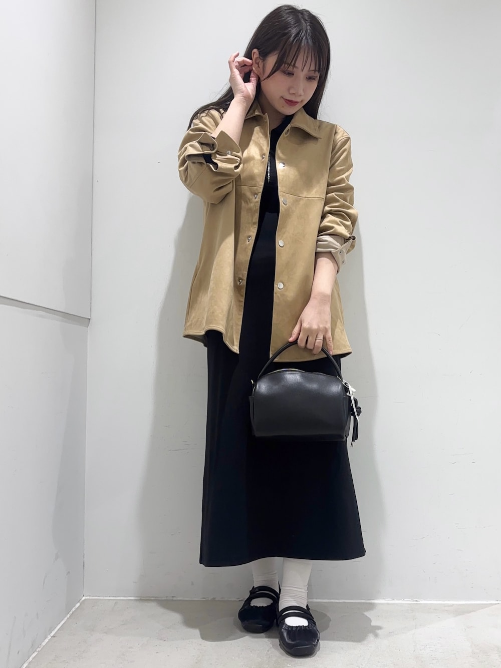 インナーはシャーリングドレープトップを着て綺麗めも取り入れてみました♪