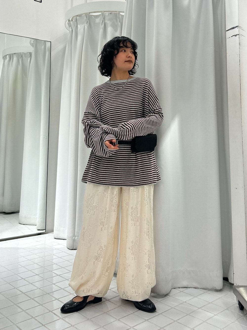 ロンTは袖のフリルが可愛く、オーバーサイズでゆるっと着られて◎
