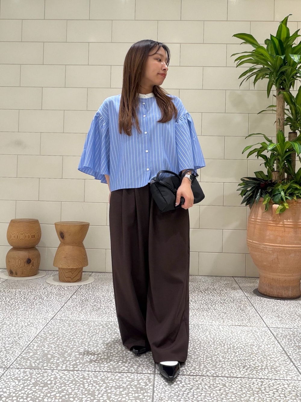 短め丈ですっきり見えるブラウス。