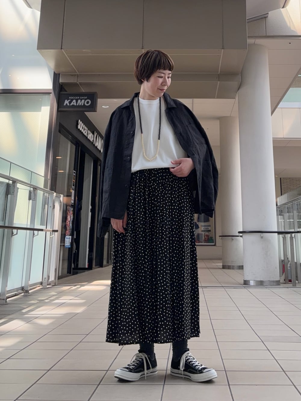 中にきたカットソーは薄手で気温が高い日にも着やすいです。