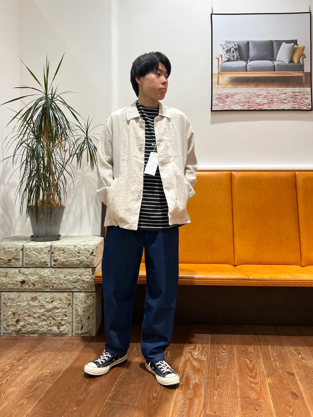 ジャケットは軽い着心地でデニムなど