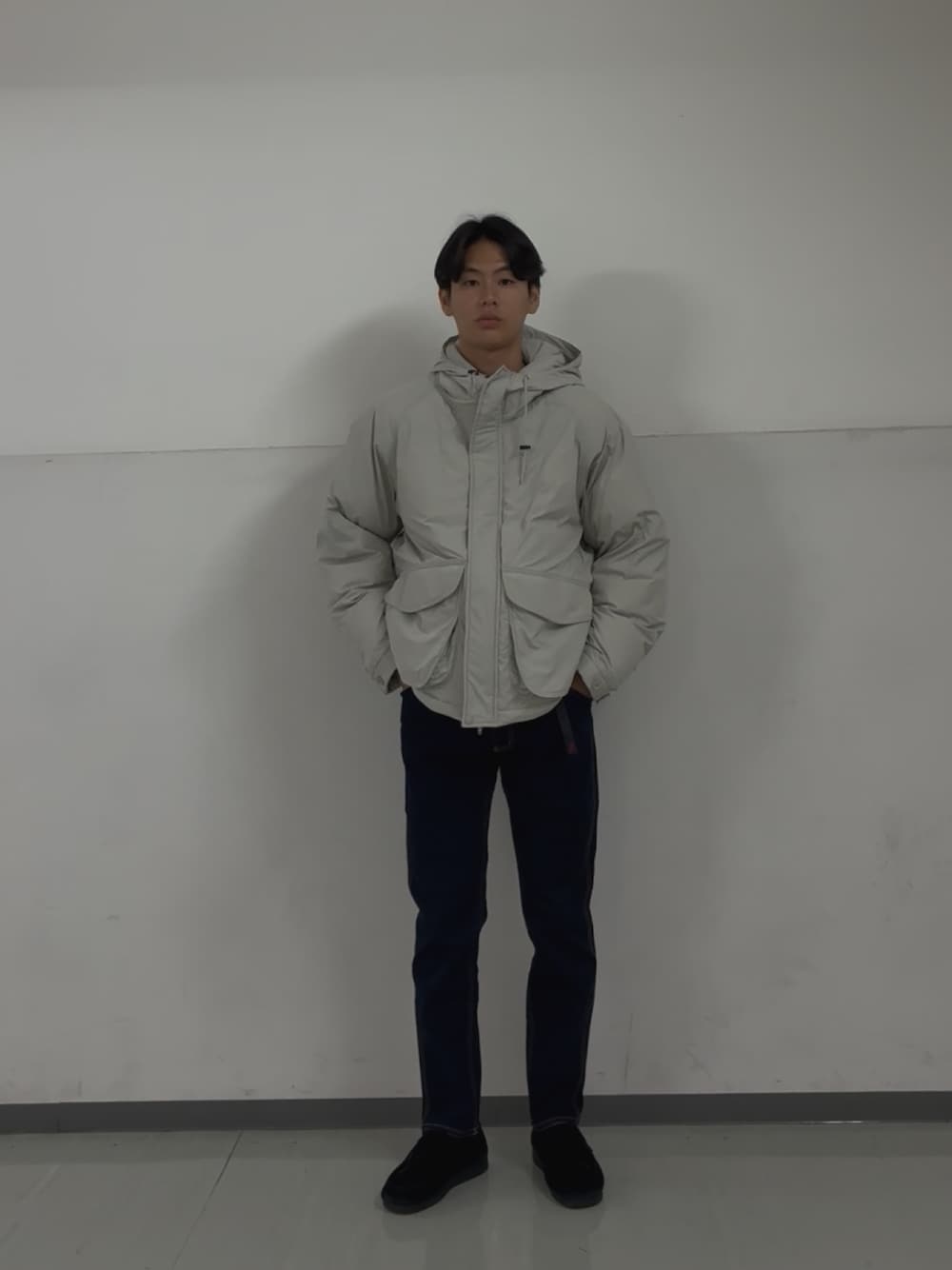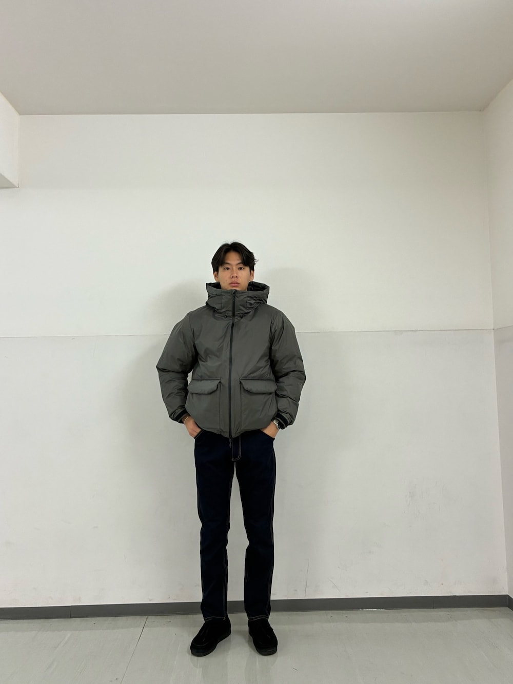 フワッとした生地感ですが形はダボっとせず、スッキリシルエットで着れますよ!