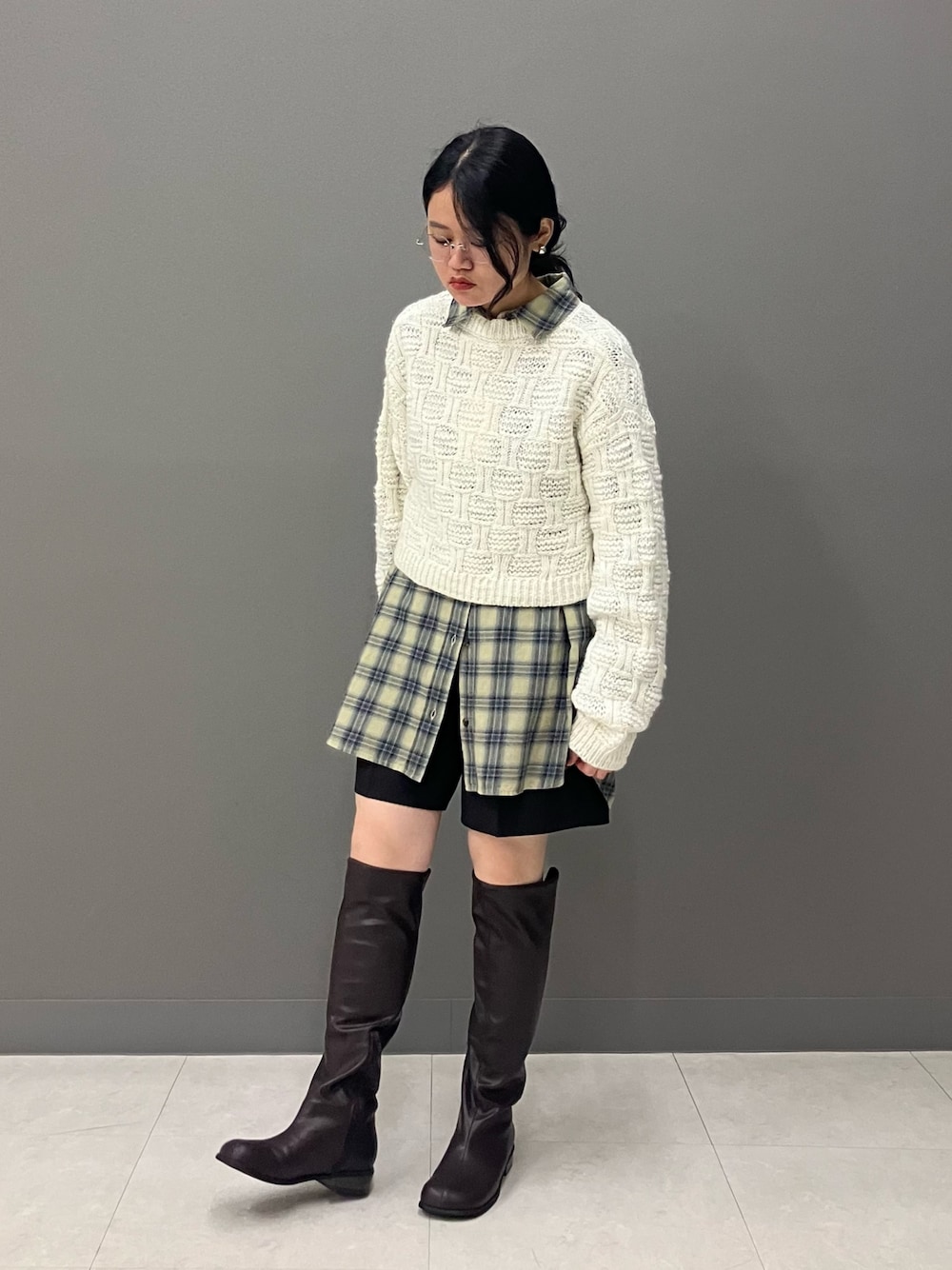 裾が丸くカーブするデザインに処理されているので、下のボタンを何個か外すと自然とくびれができて細見えします!