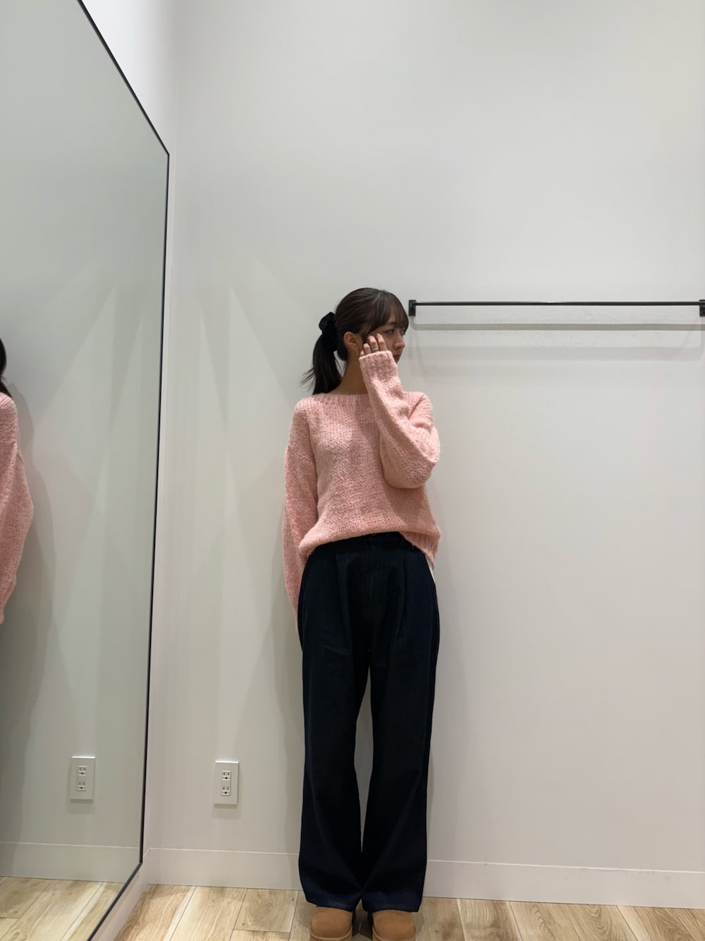 パンツはてろっとした素材感でレイヤードするのにとっても相性が良く、ウエストオールゴムでとっても楽ちんです😊