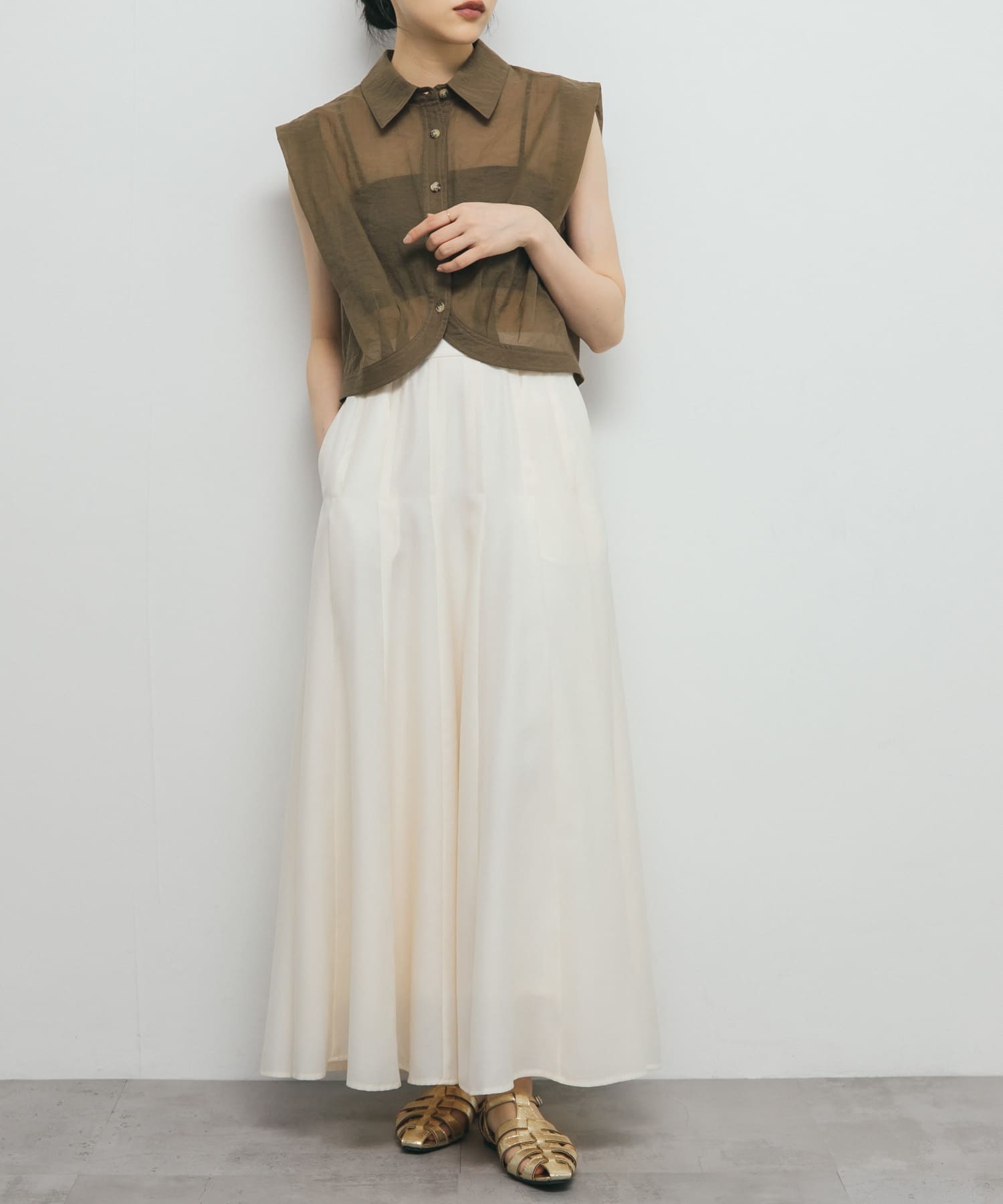 スカートは肌あたりが柔らかく、腰回りのタックで立ち姿が綺麗ですし、明るいトーンで写真写りも良さそうです。