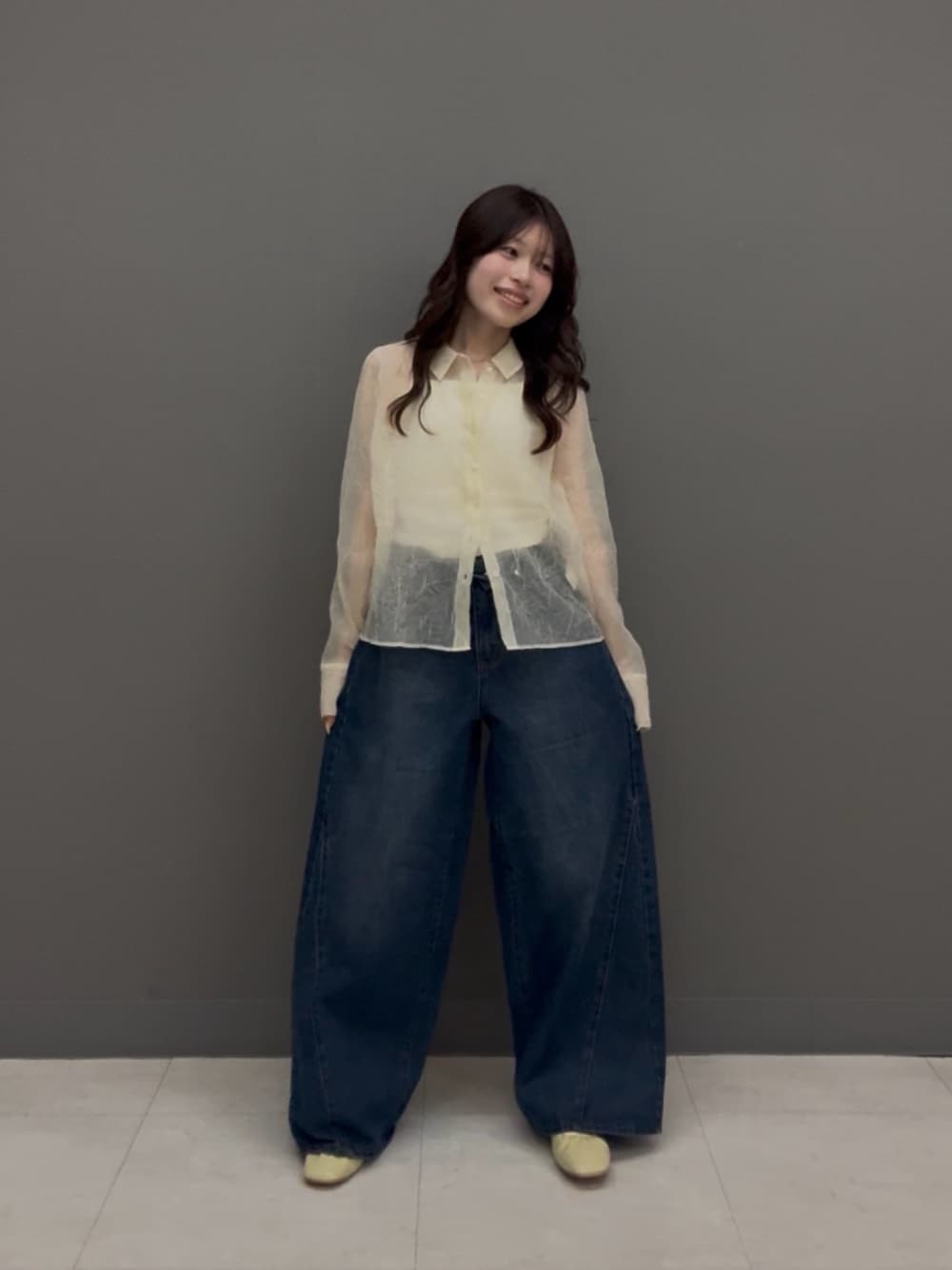秋先取りしたい方は写真のようなシアーインナーで!夏らしく着たい方はタンクトップやビタミンカラーのインナー・Tシャツで!