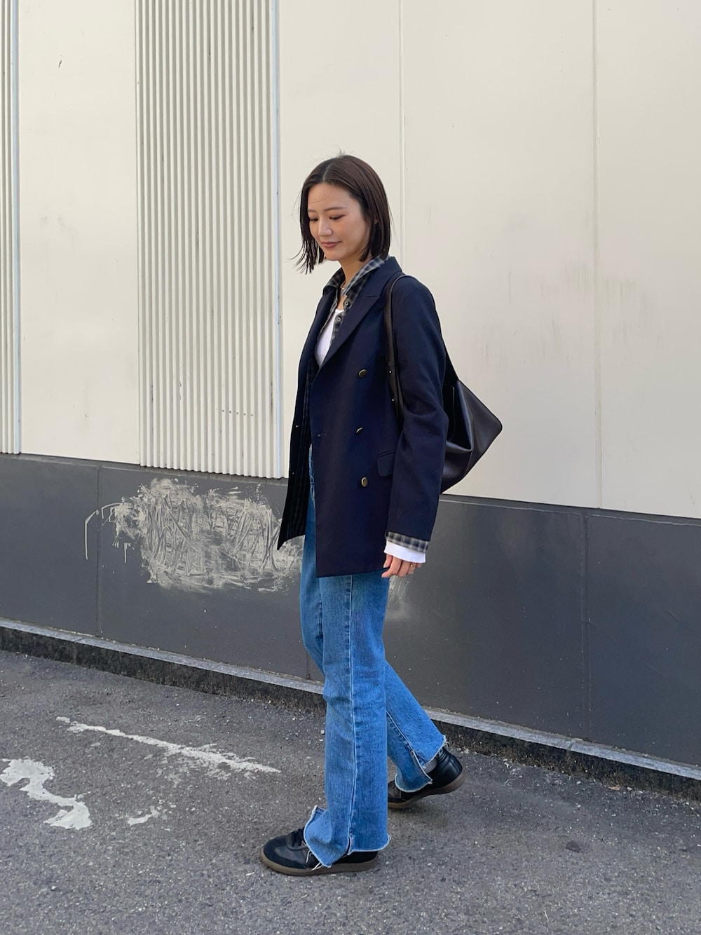 低身長にも割と着丈の長いファーもバランスよく着ていただけます!ボリュームがあるので、スカートはIラインの形やパンツもスッキリ見えるスラックスパンツの相性が良いですよ!
