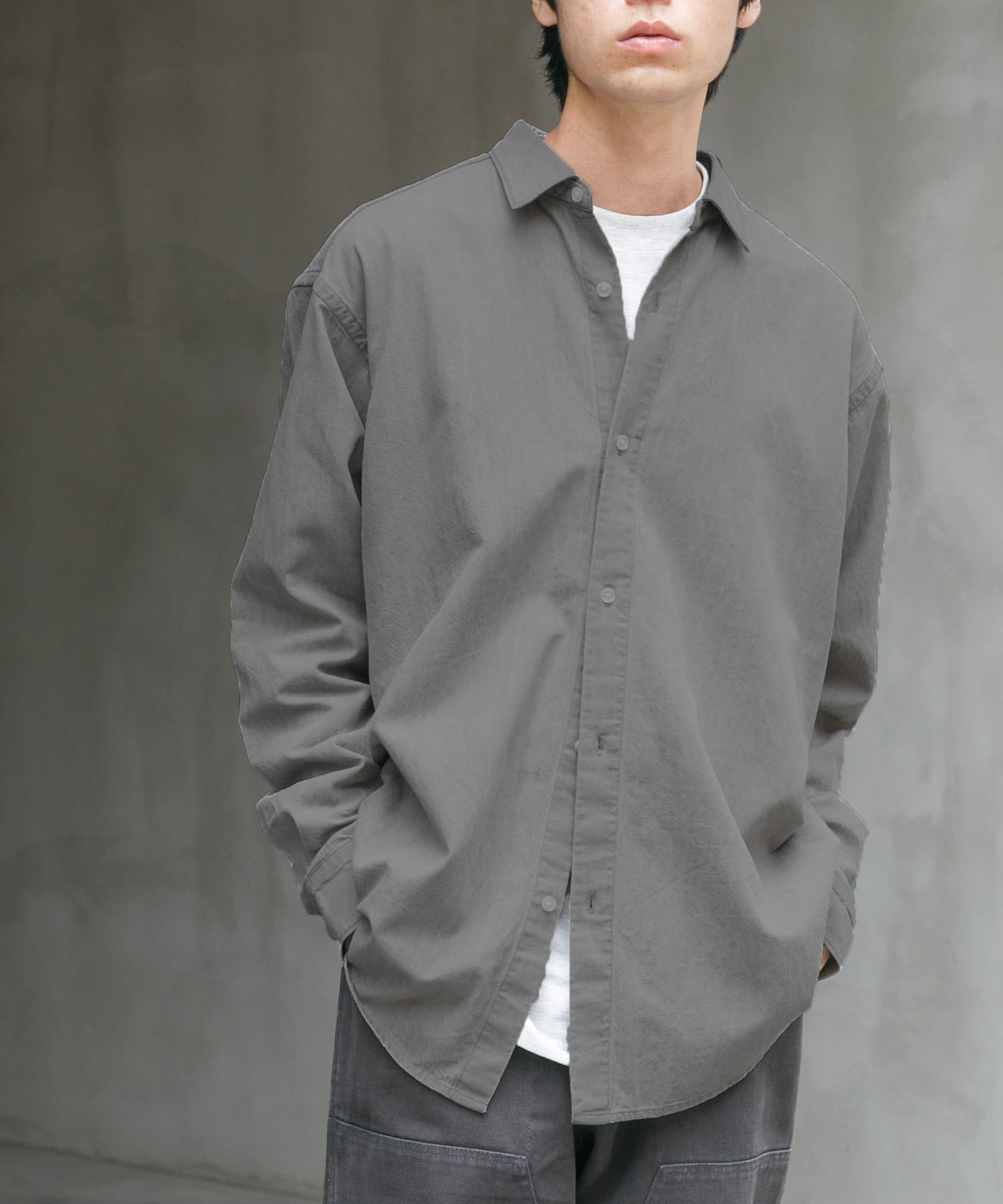 デザインはシンプルなレギュラーカラーのシャツですが、程よくゆとりを持たせることで羽織りとしても活躍してくれる一枚に仕上げました。