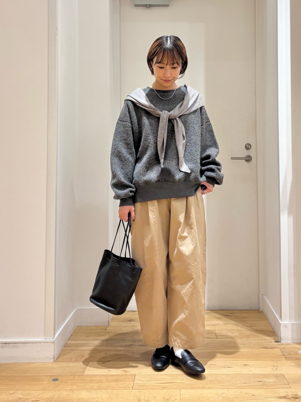 スッキリした着丈なので、ワイドパンツやスカートなどボリュームのあるボトムス合わせもオススメです◎