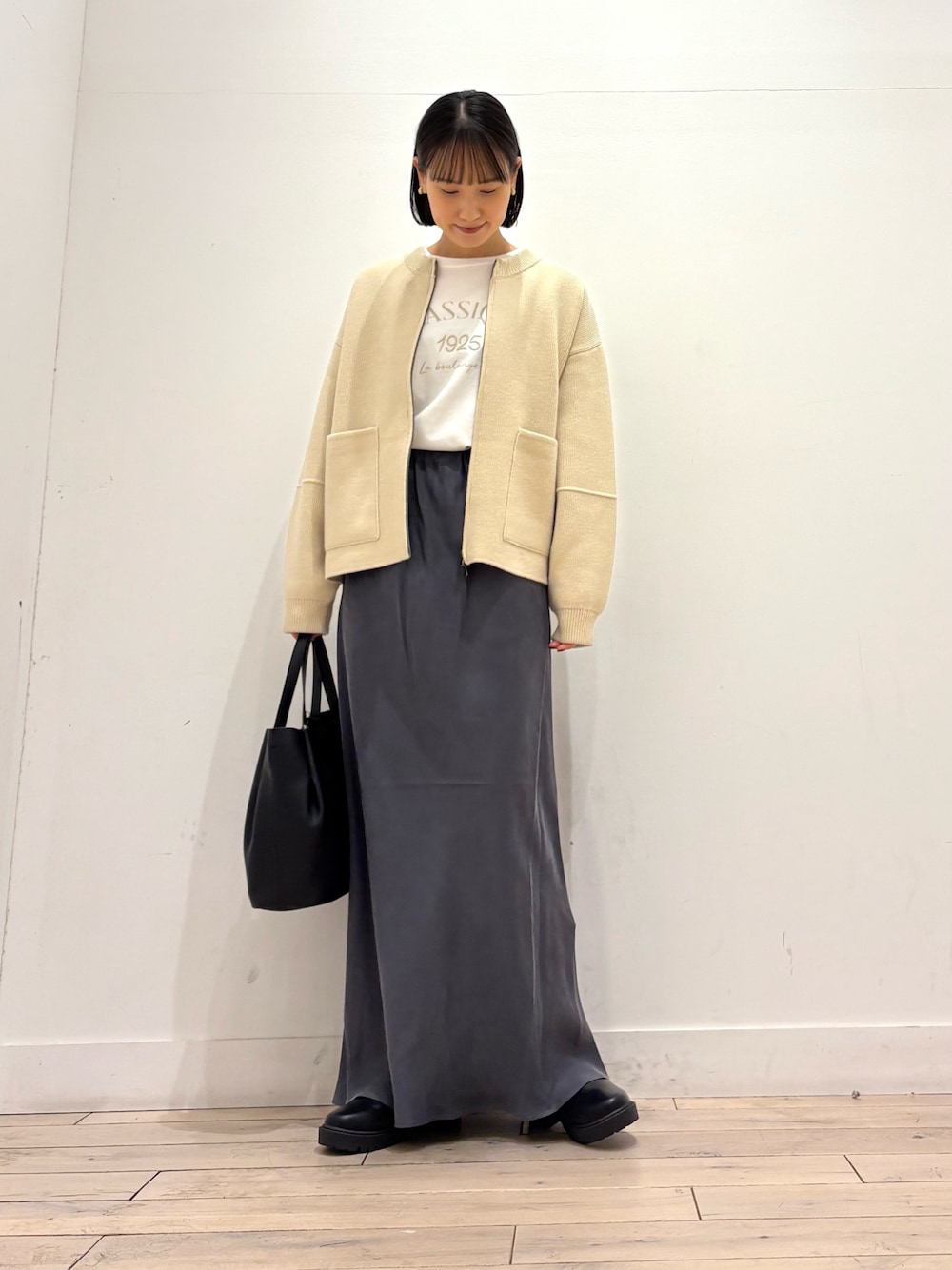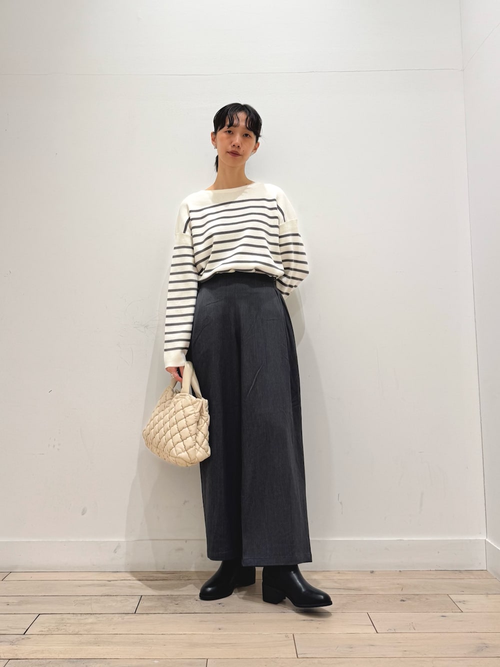 SALEになっているスカートも薄手ではありますがチェック柄が秋らしいコーディネートにしてくれます◎