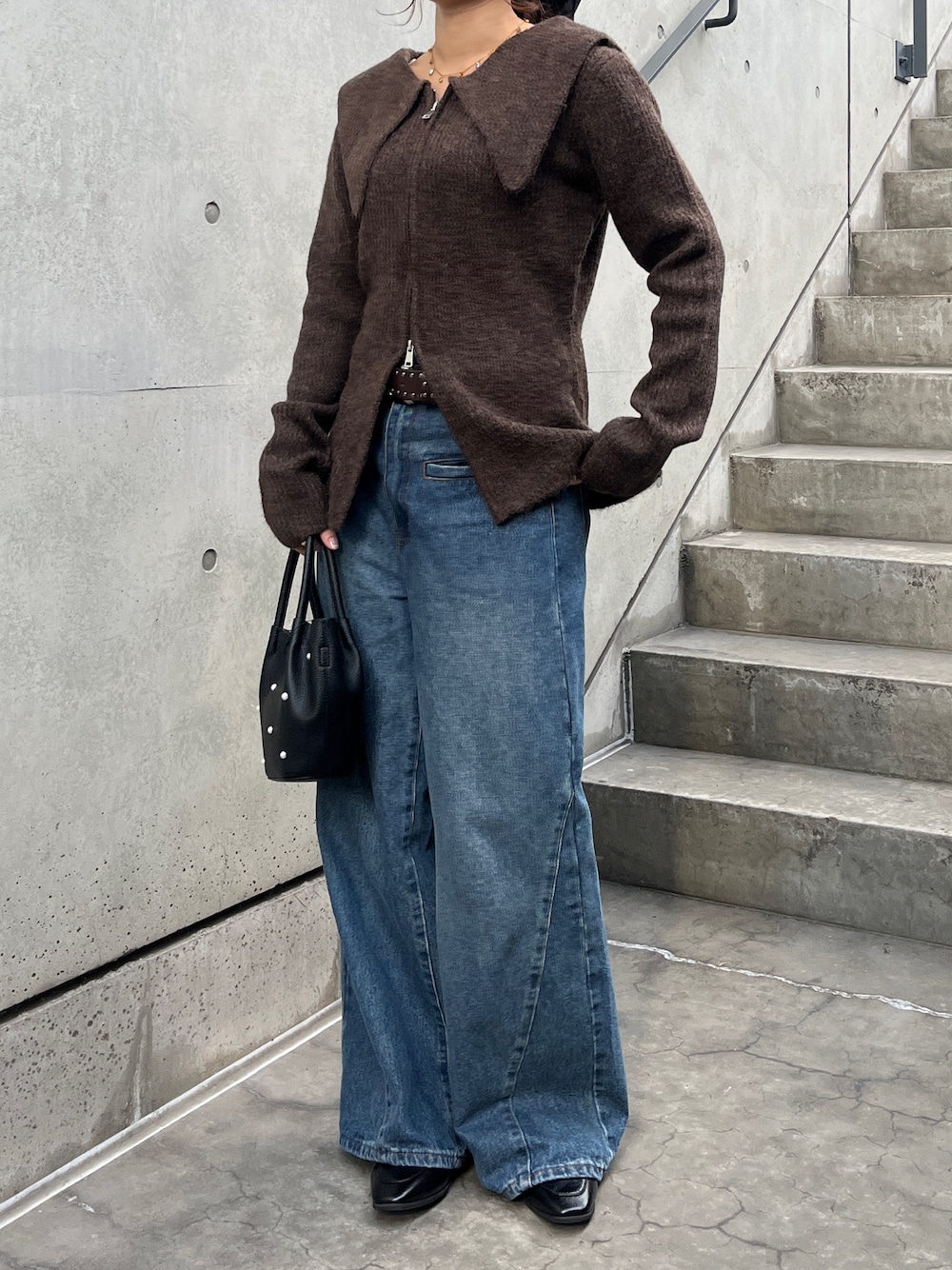ニットのカラー配色が可愛い存在感抜群のトップスです✨