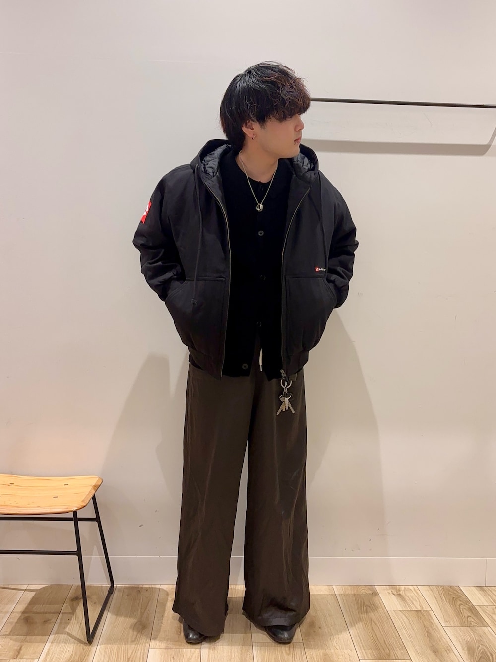 パンツはリネンライクのタックワイドパンツを合わせゆるっとコーデに👍