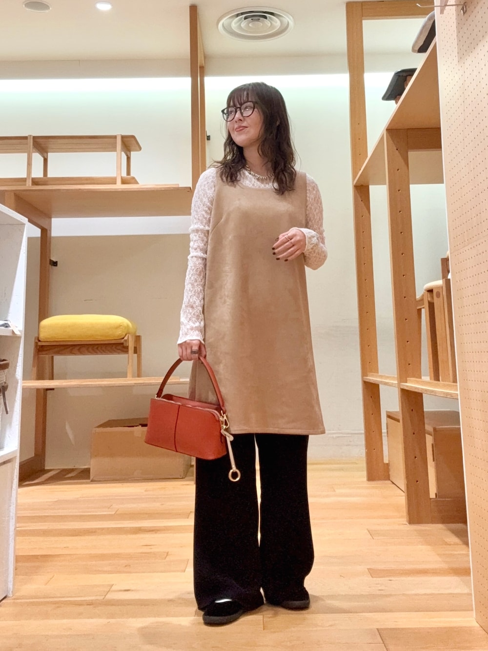 Iラインのスカートは裾が切りっぱなしで長さもありこなれ感がプラスできます◉