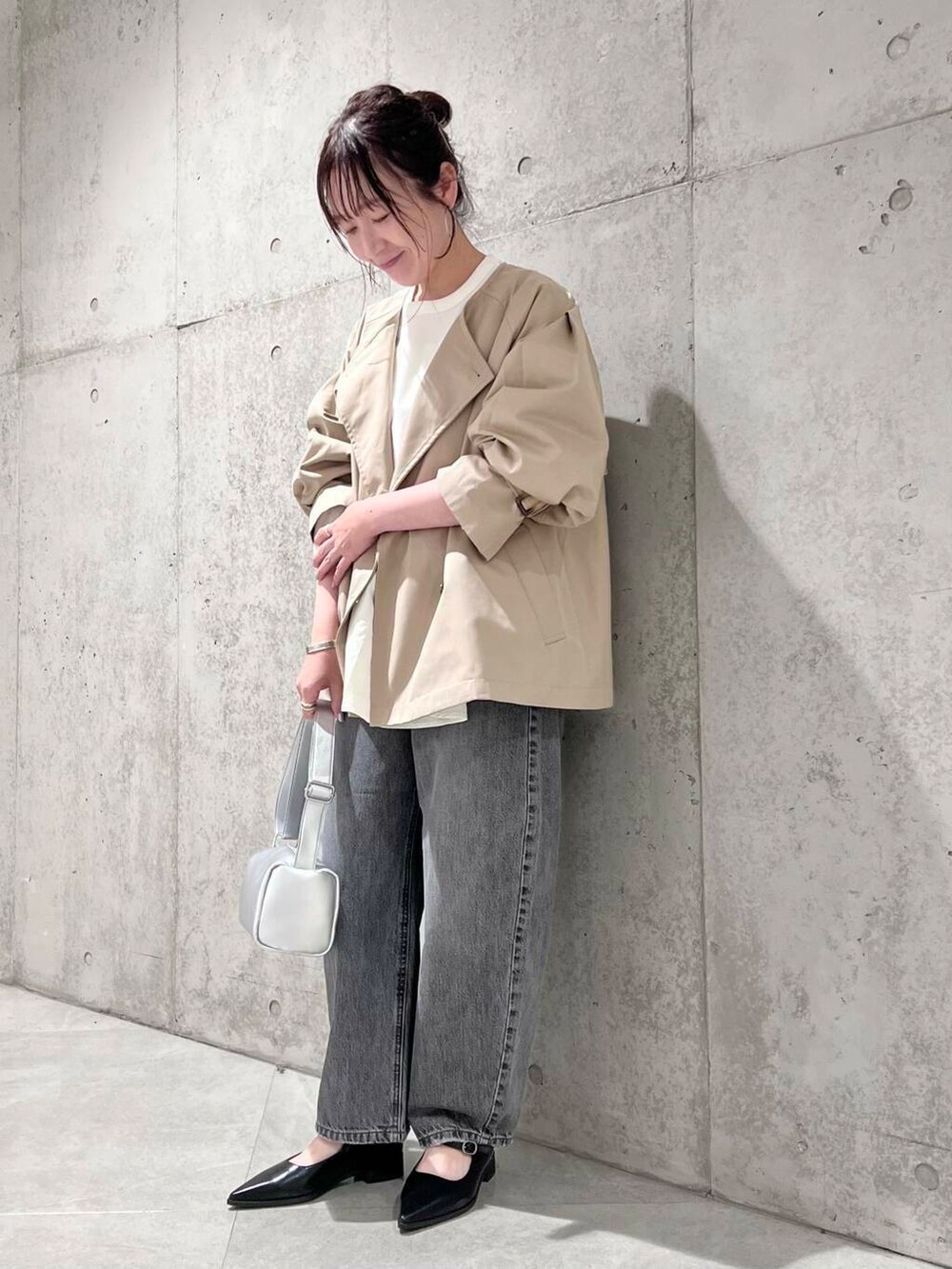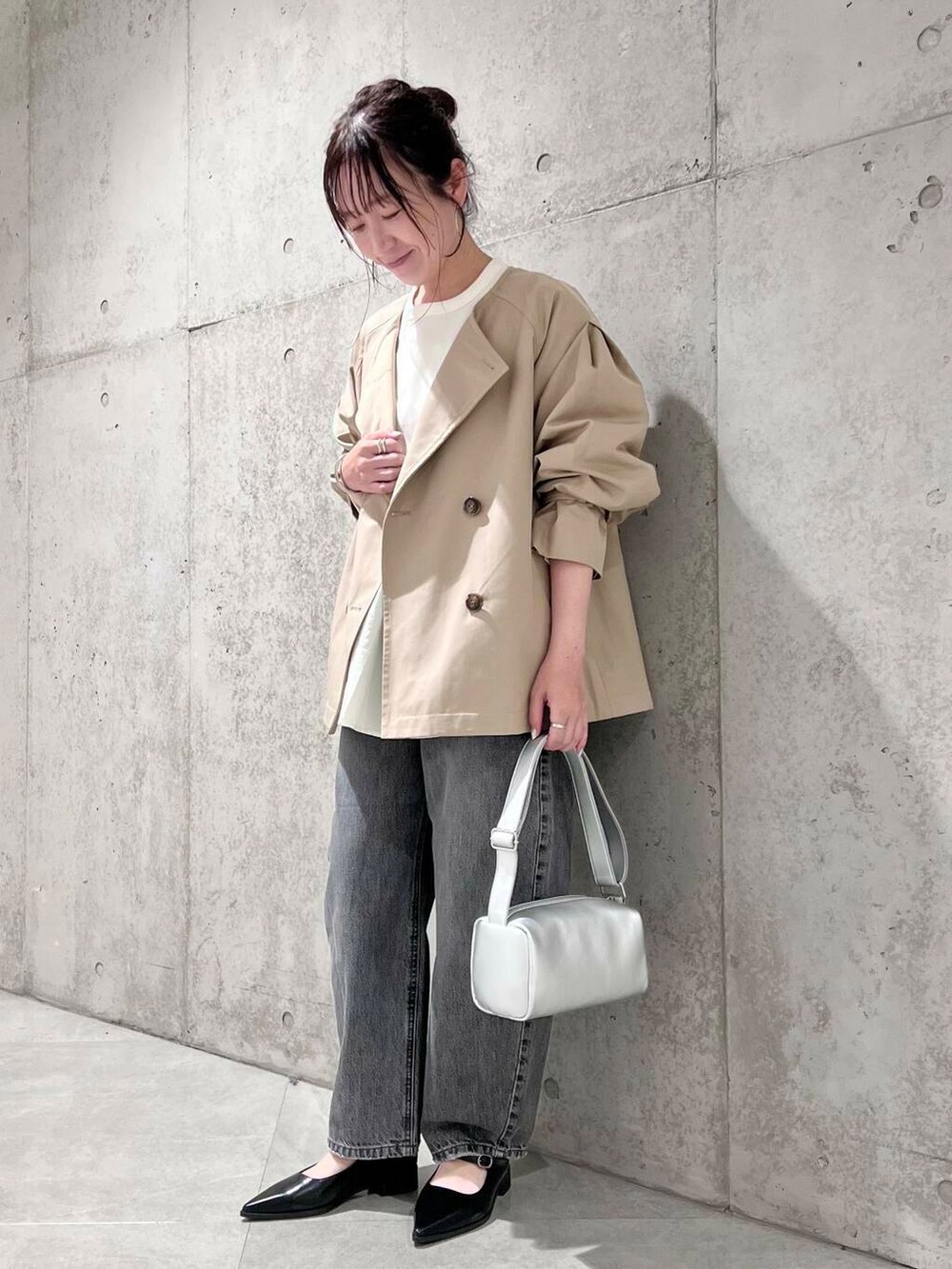 デニムパンツは、トレンド感のあるカーブシルエットです。
