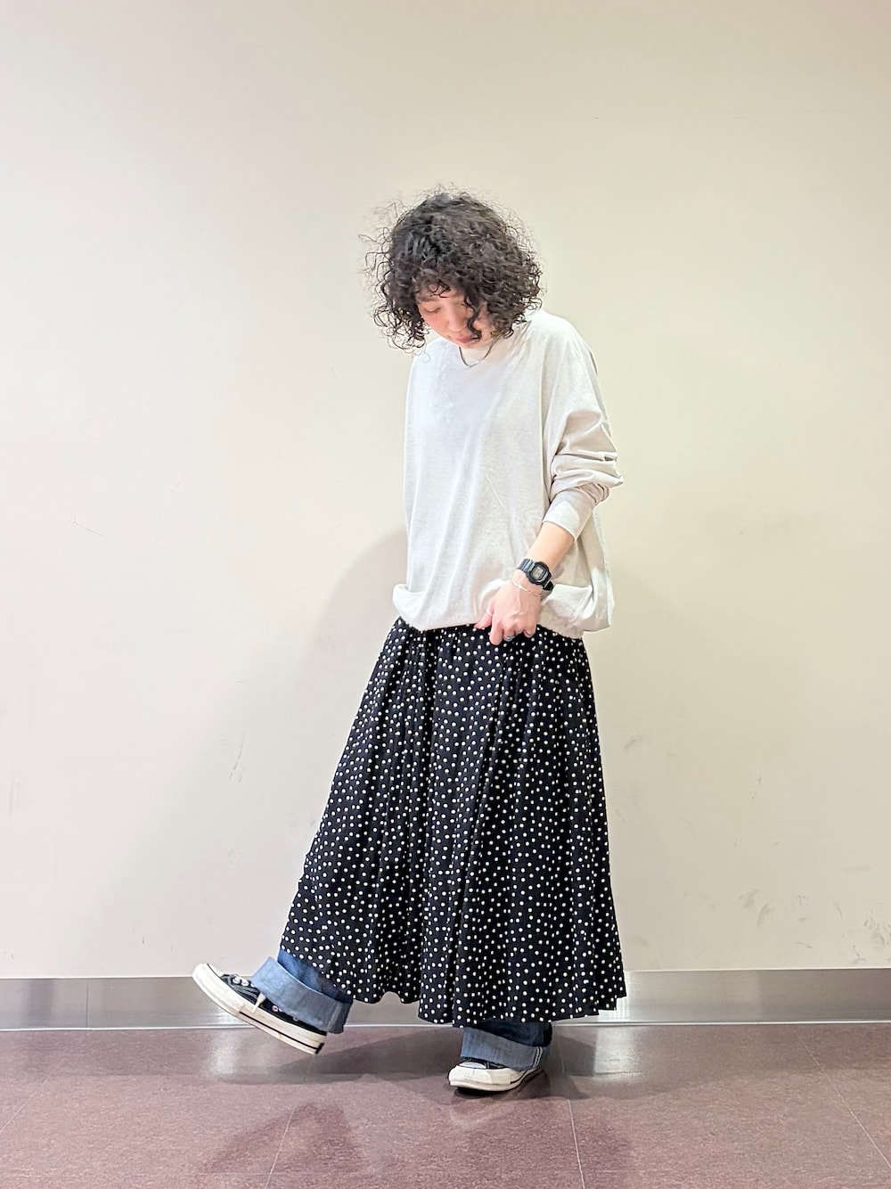 200日ニットのカーディガンを主役にコーディネートを組みました!