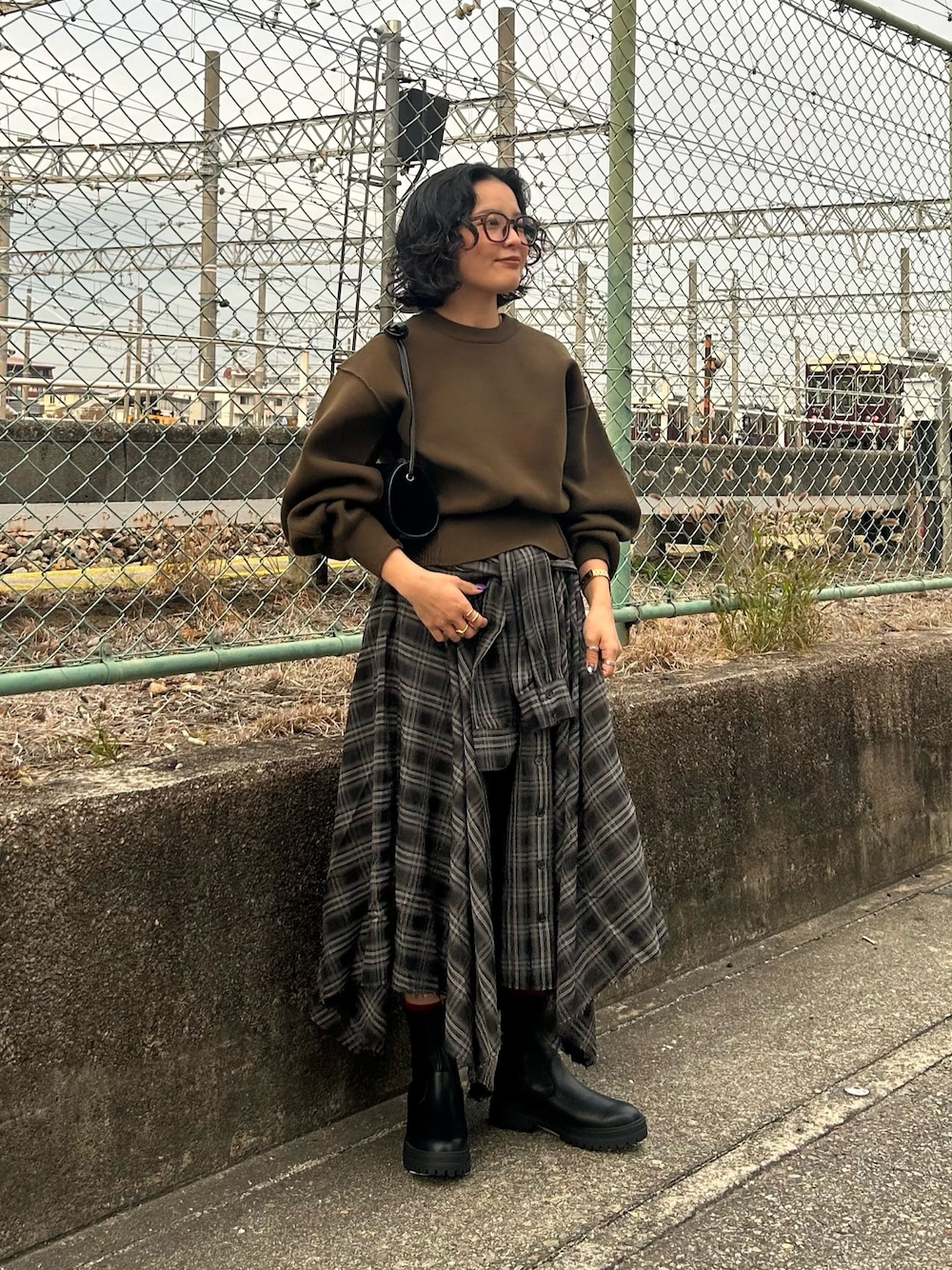 寒くなってきたらシャツを中に入れても可愛いですよ◎