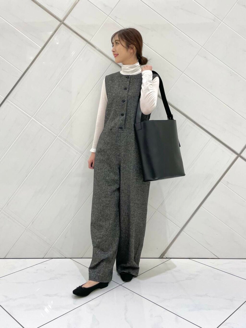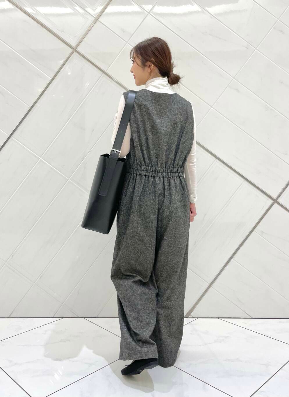 オールインワンはSサイズで地面に付くか付かないくらいの長めの着丈で、ヒールのあるシューズを履くとちょうど良さそうです。
