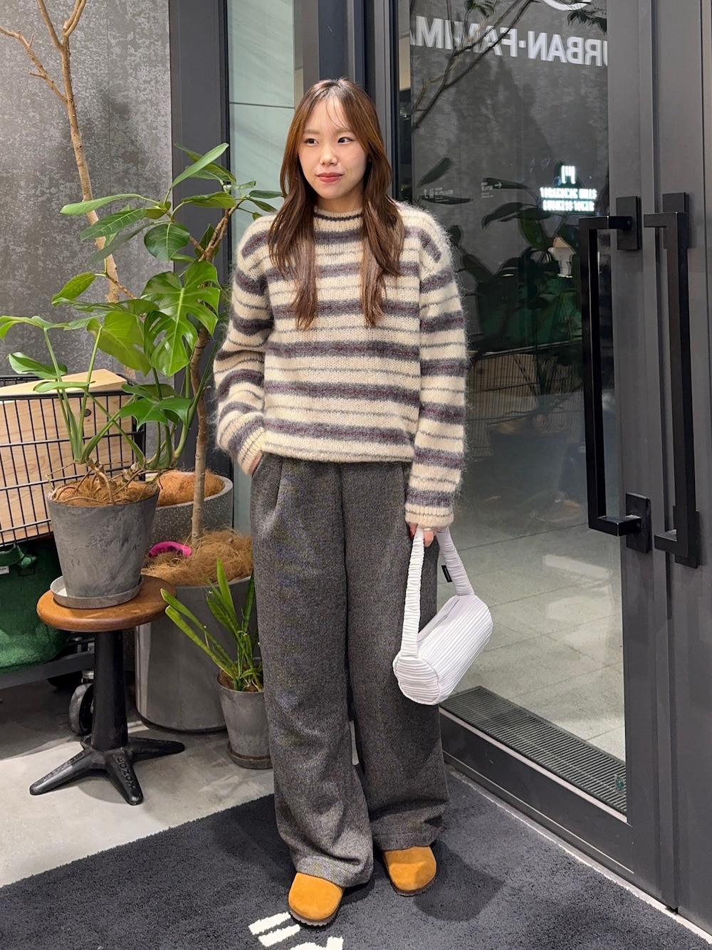 シャツとか襟付きのトップスと合わせてもいいですね!