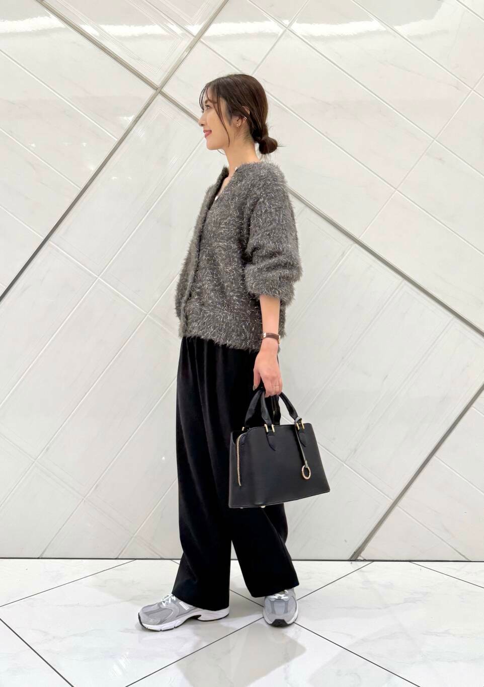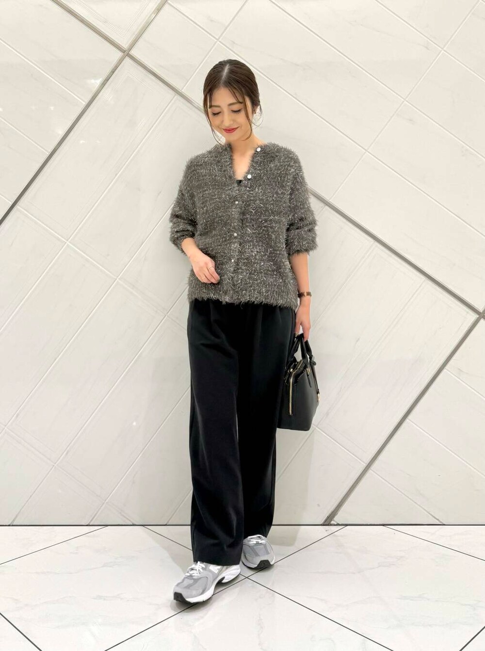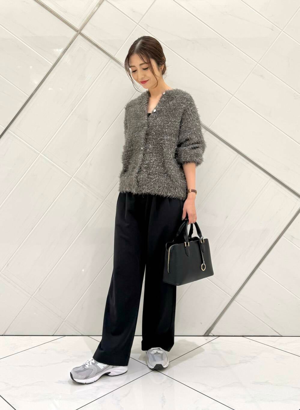 SENSE OF PLACEのカーディガンは昨年も大人気だったアイテムで、程よいラメ感とゆるっとした抜け感のあるシルエットが可愛らしい1着です。