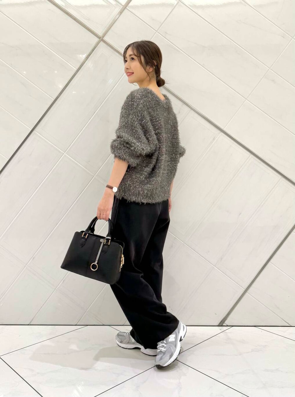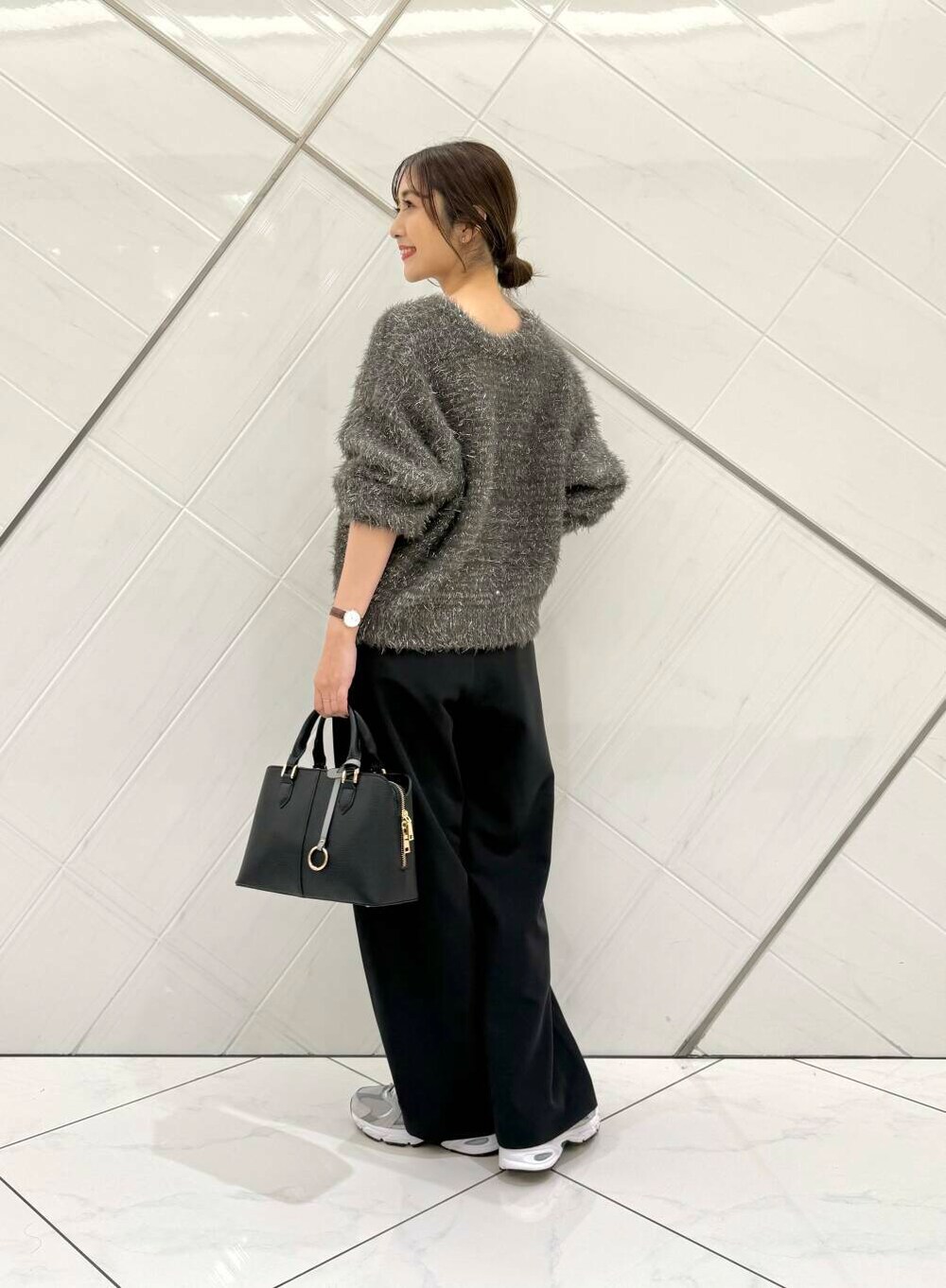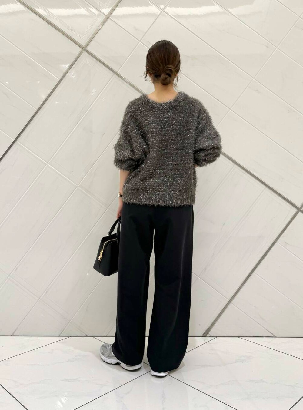 SENSE OF PLACEのカーディガンは昨年も大人気だったアイテムで、程よいラメ感とゆるっとした抜け感のあるシルエットが可愛らしい1着です。