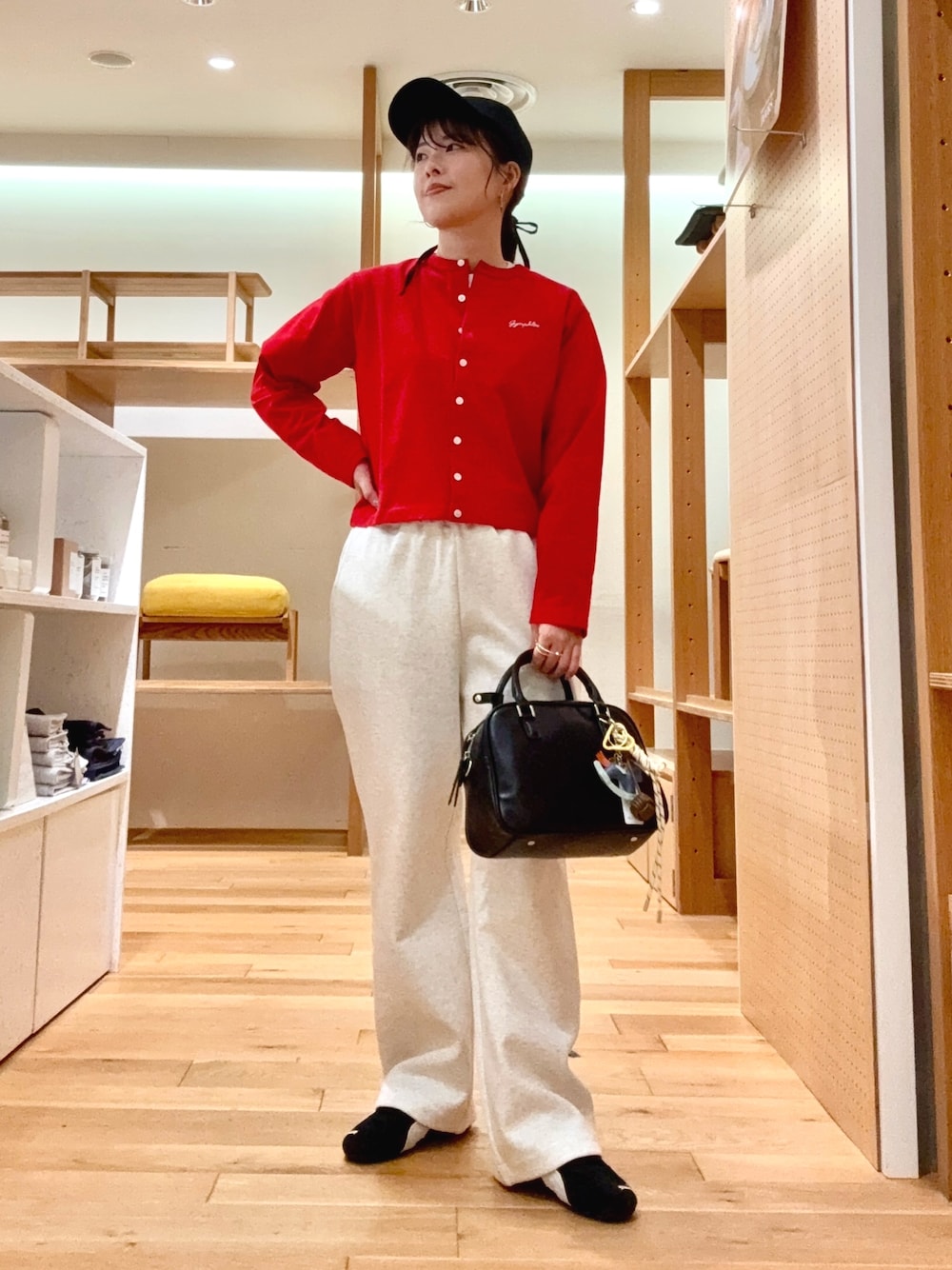 ニットはオーバーサイズでユルっとしたシルエットなので、タイトなスカートやパンツを合わせるのがおすすめです◎