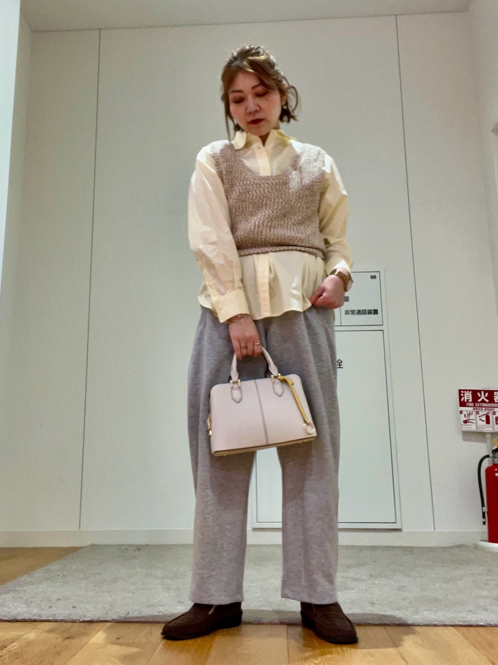 バッグは季節感のあるファー素材にしました。