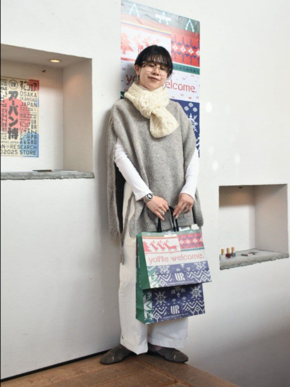 合わせたペルーカーディガンは、ボリューム感が秋冬らしくほっこりしますね。