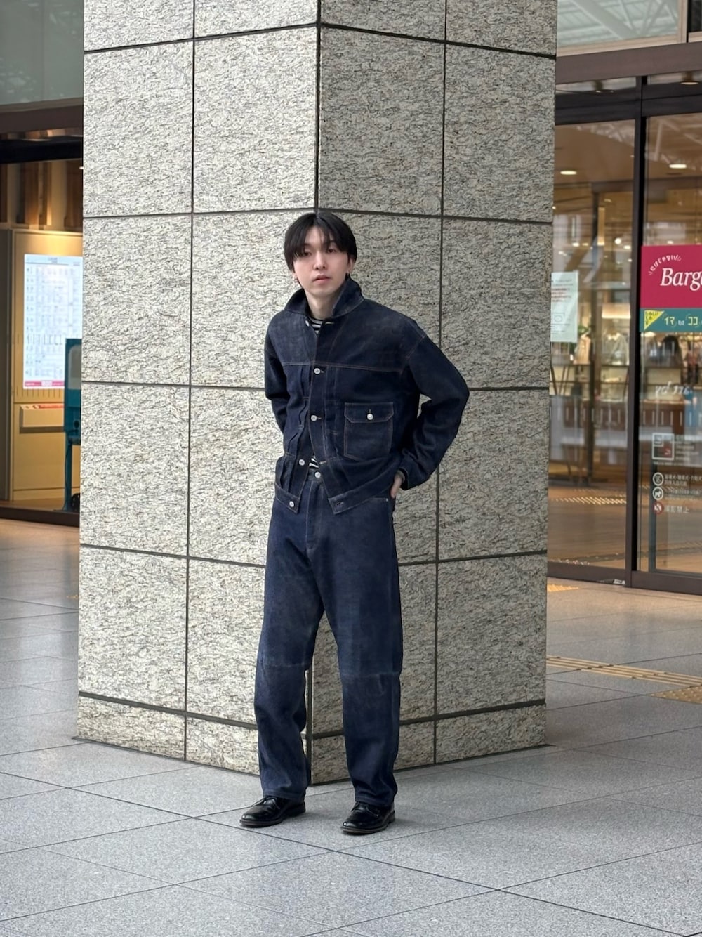 アーバンリサーチのヘリンボーンのセットアップを着用しています。