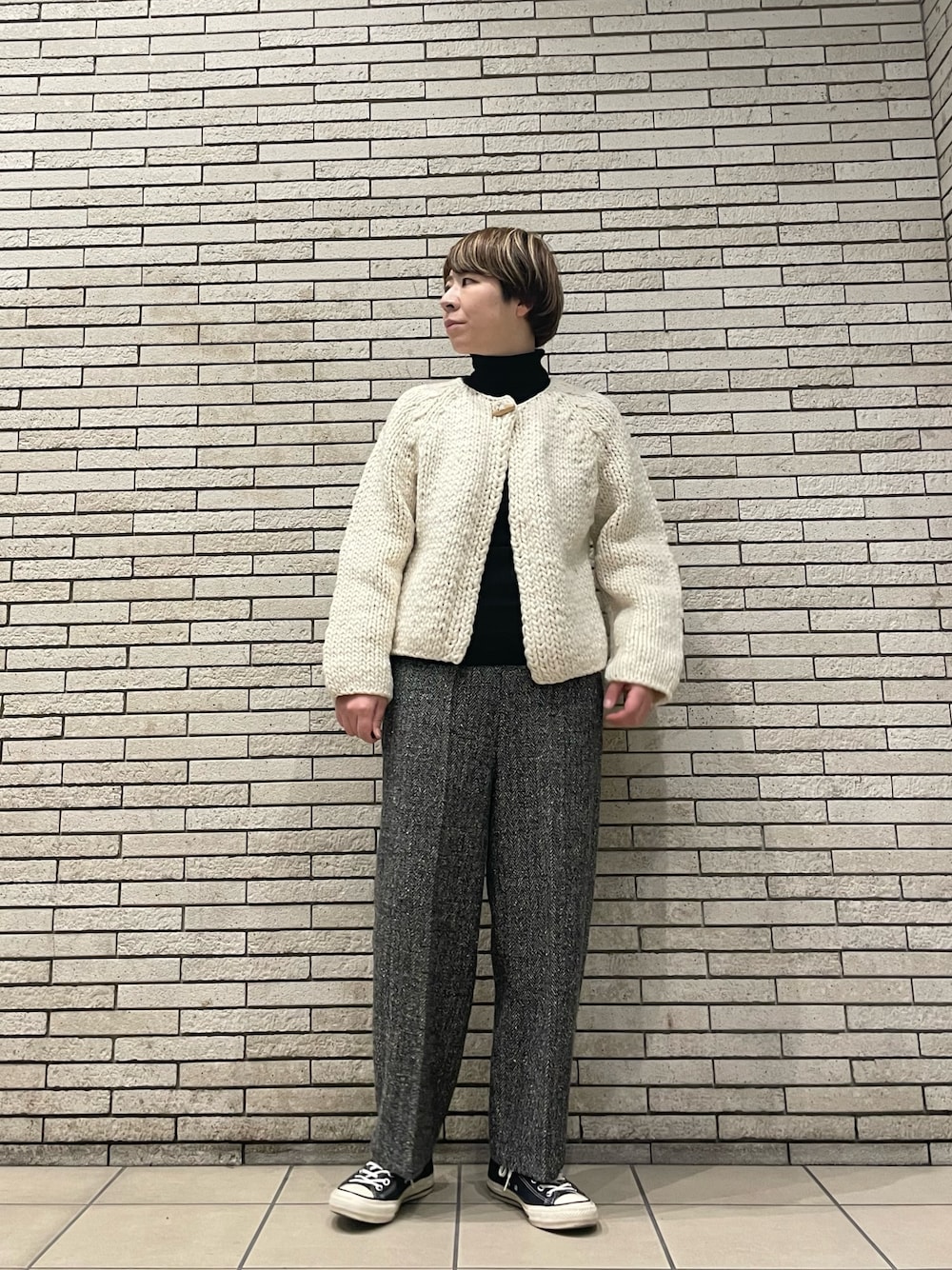 タートルネックは毎年人気のボーダーリブタートルを合わせました。