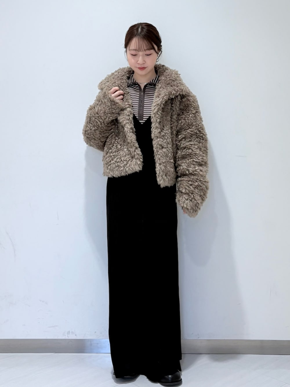 差し色で靴下とバッグに青を入れたモノトーンコーデです!