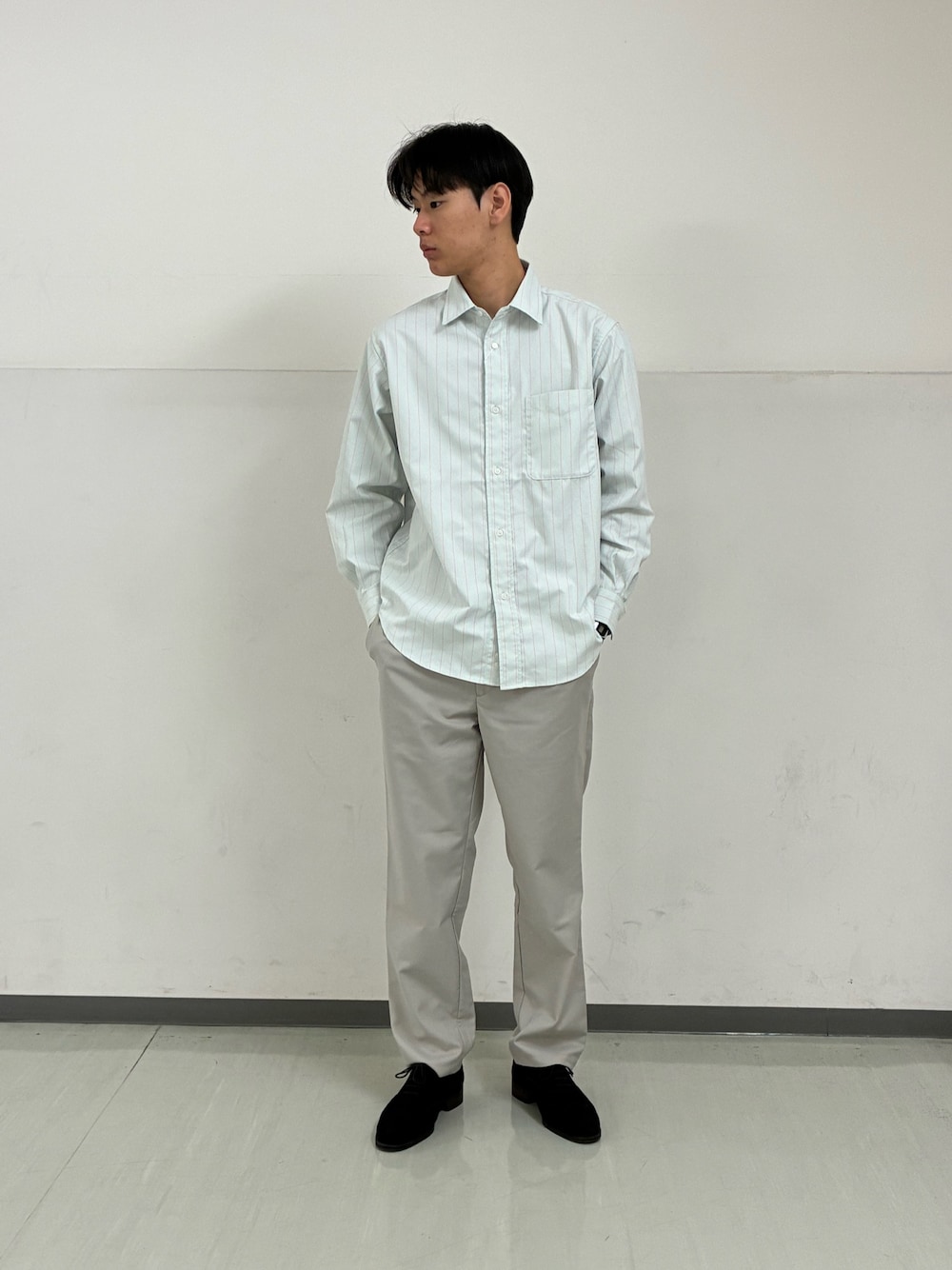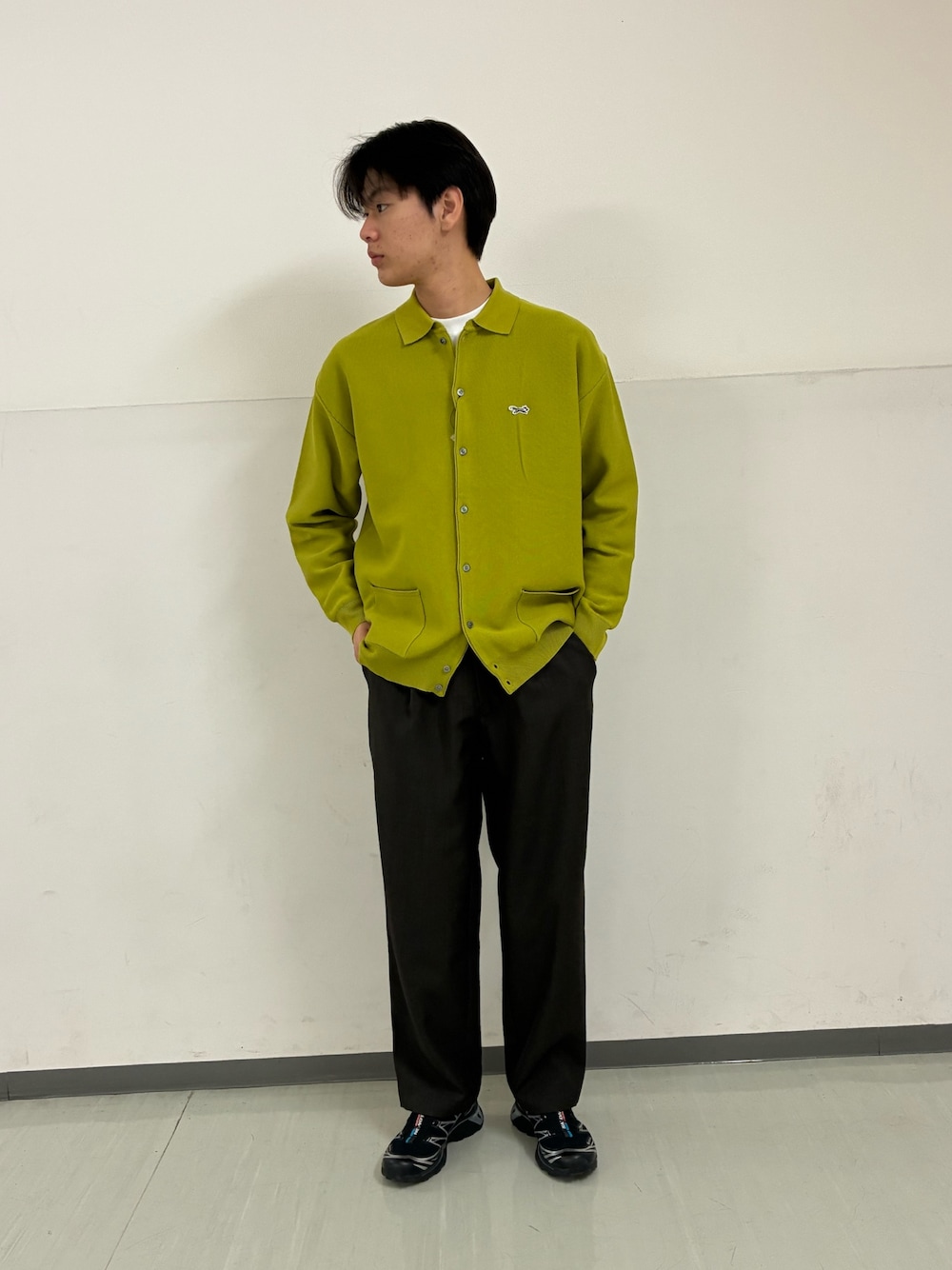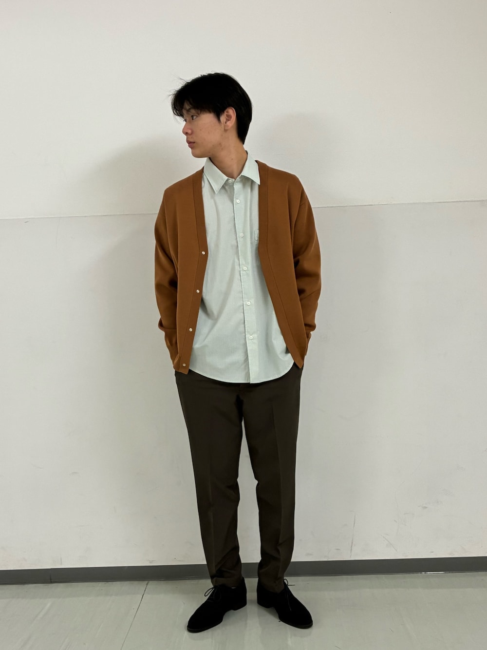 まだまだ寒い時期なので、このコーデの上にカーディガンを合わせたり、中のインナーをニットに変えていただくだけで長い期間着ていただけます^^