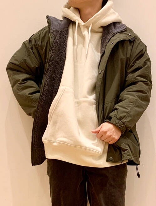 今回はURDの裏ボアナイロンブルゾンを使ったコーディネートです。