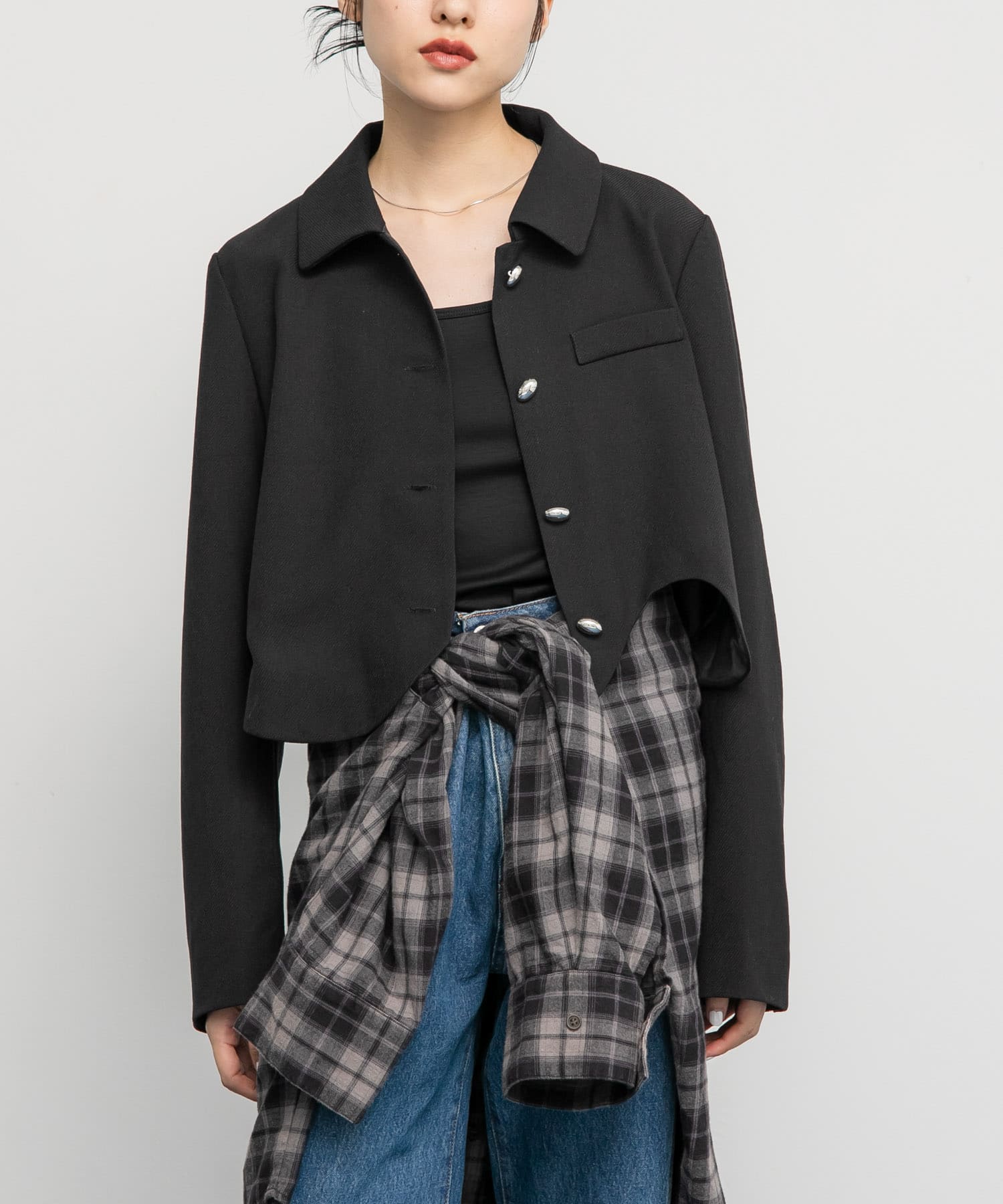 ショート丈のジャケットにミニワンピースはスタイルが良く見えるのでおすすめです!✨